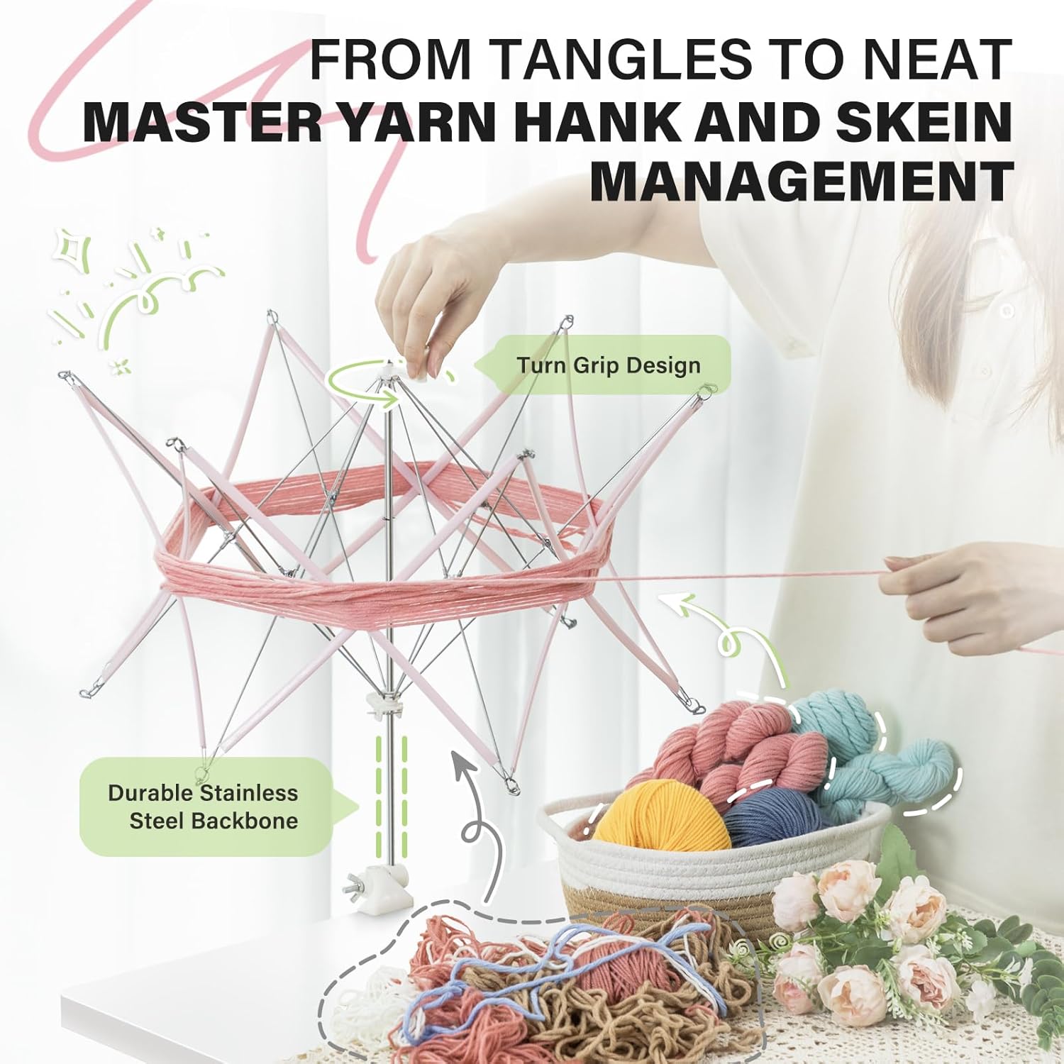- Thoughtful Design: The Yarn Swift can be used with yarn winder to help you create a beautifully organized yarn ball within minutes.And it features a durable and flexible coil structure that provides stable support for yarn. With a spring button, it allows for size adjustment, accommodating yarn diameters of up to 23.6 inches (60cm). It makes your knitting collection neat and tidy.