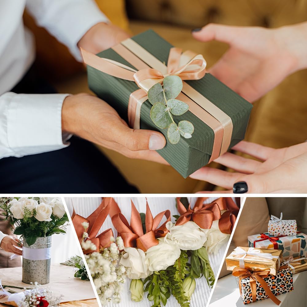 - 【PREMIUM RIBBONS】 Our fabric ribbons is made of high quality polyester. Feature on smooth, soft and silk surface without any wrinkles. The color of the ribbon is the same as that shown in the picture, and there is no color difference. It is the best ribbon to choice for gift wrapping and crafts.