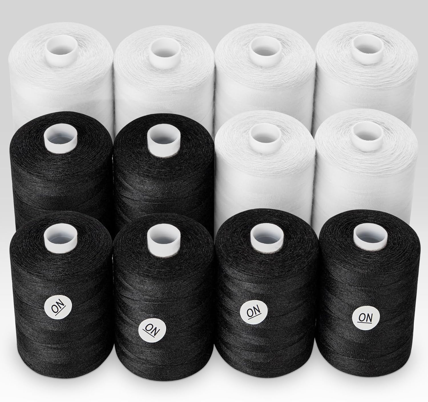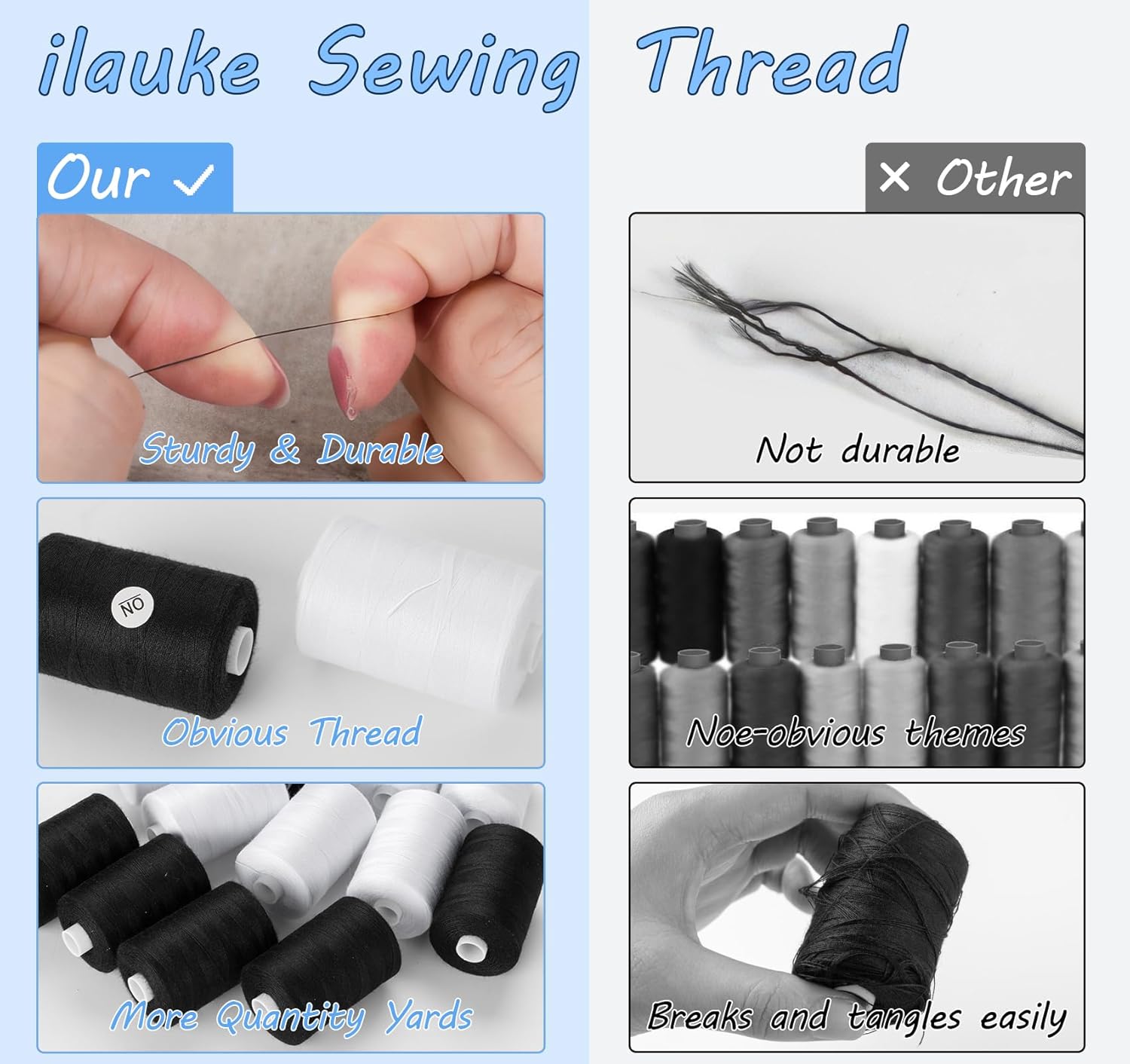 ilauke Sewing Thread, 12 Spool All Purpose Polyester Thread, Each 1000 Yards Sewing Thread for Hand Sewing,Quilting,Sewing Machine, 2 x White & 2 x Black