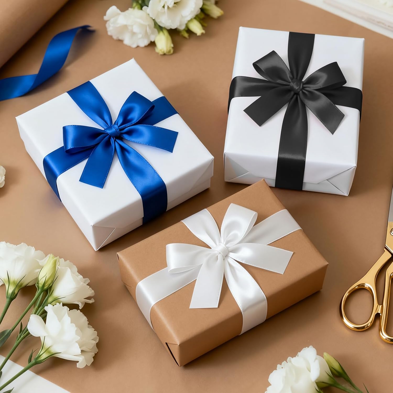 - 【Bright Color】: The satin ribbon for wrapping has multiple choices for colors. The solid color ribbon will not fade easily and is durable in different situations and occasions like birthday, wedding, party, baby shower, back to school, holiday decorations, home coming, anniversary, family gathering and more.