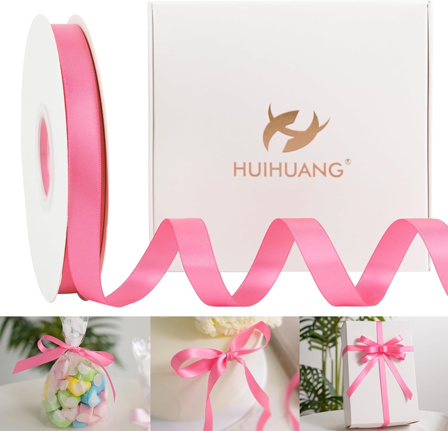 HUIHUANG Hot Pink Satin Ribbon 1/2 inch X 50 Yards Continuous, Double-Faced Satin Pink Ribbon for Gift Wrapping, Bows, DIY Crafts, Flower Bouquet, Bridal Shower Wedding Decor