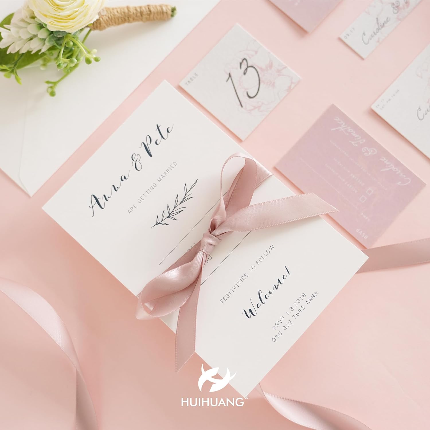 HUIHUANG Dusty Rose Rose Satin Ribbon 1/2 inch X 50 Yards Continuous, Dusty Pink Double-Faced Satin Ribbon for Gift Wrapping, Bows, DIY Crafts, Flower Bouquet, Wedding Bridal Shower Decor
