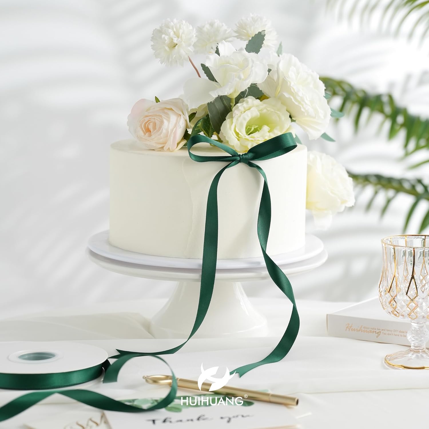 HUIHUANG Hunter Green Satin Ribbon 1/2 inch X 50 Yards Continuous, Dark Green Double-Faced Satin Ribbon for Gift Wrapping, Bows, DIY Crafts, Flower Bouquet, Wedding Decor, Christmas