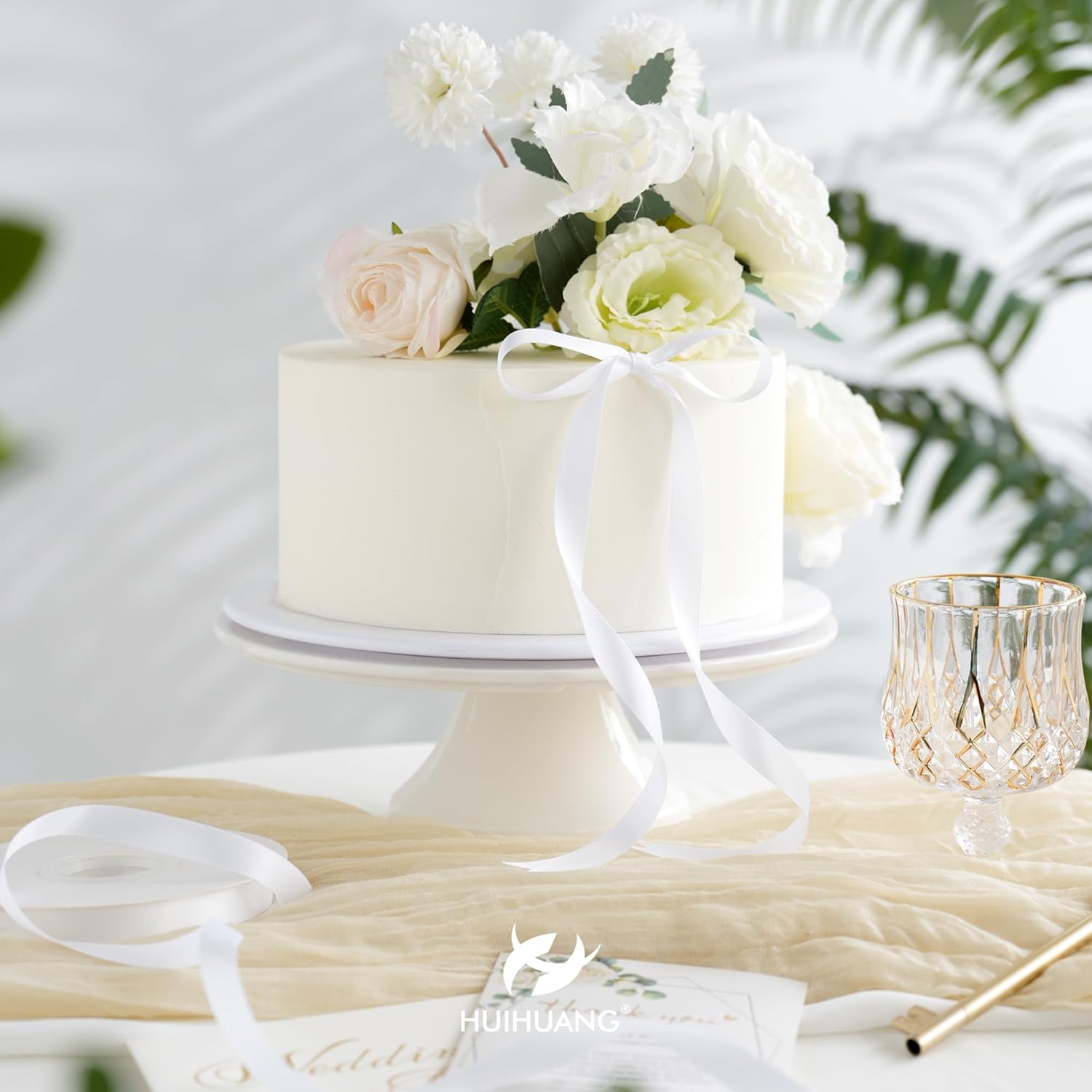 HUIHUANG White Satin Ribbon 1/2 inch X 50 Yards Continuous, White Double-Faced Satin Ribbon for Gift Wrapping, Bows, DIY Crafts, Flower Bouquet, Wedding Bridal Shower Decor, Hairs
