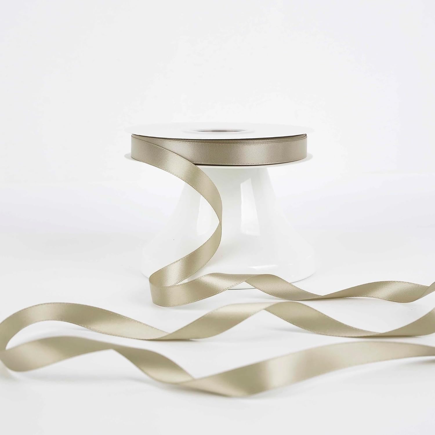- Size: Light champagne satin ribbon measures 1/2" wide and continuous 50 yards(150 feet) long in a complete roll in a paper box. Perfect size for various decorations and crafts