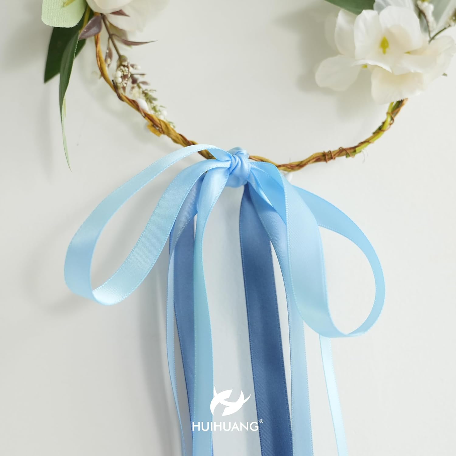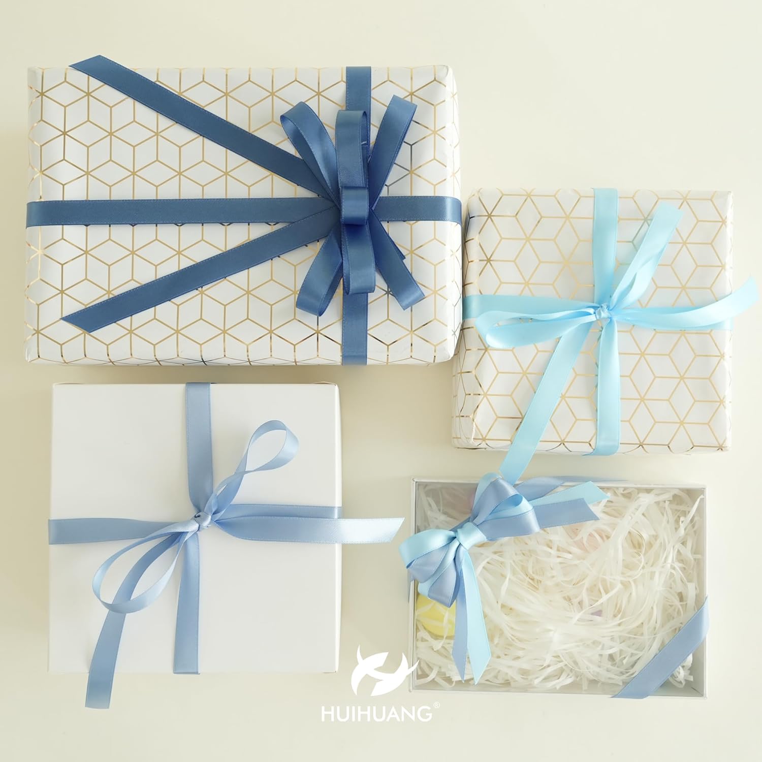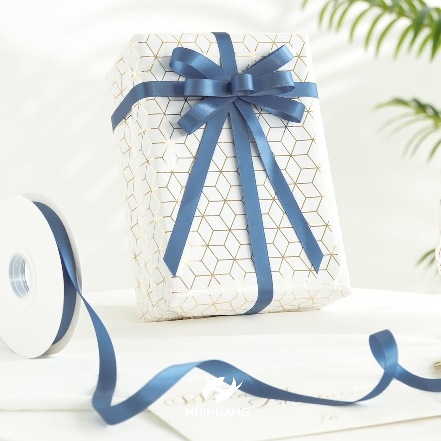 HUIHUANG Satin Ribbon 1/2 inch X 50 Yards Continuous, Smoke Blue Double-Faced Satin Ribbon for Gift Wrapping, Bows, DIY Crafts, Flower Bouquet, Bridal Shower Wedding Decor