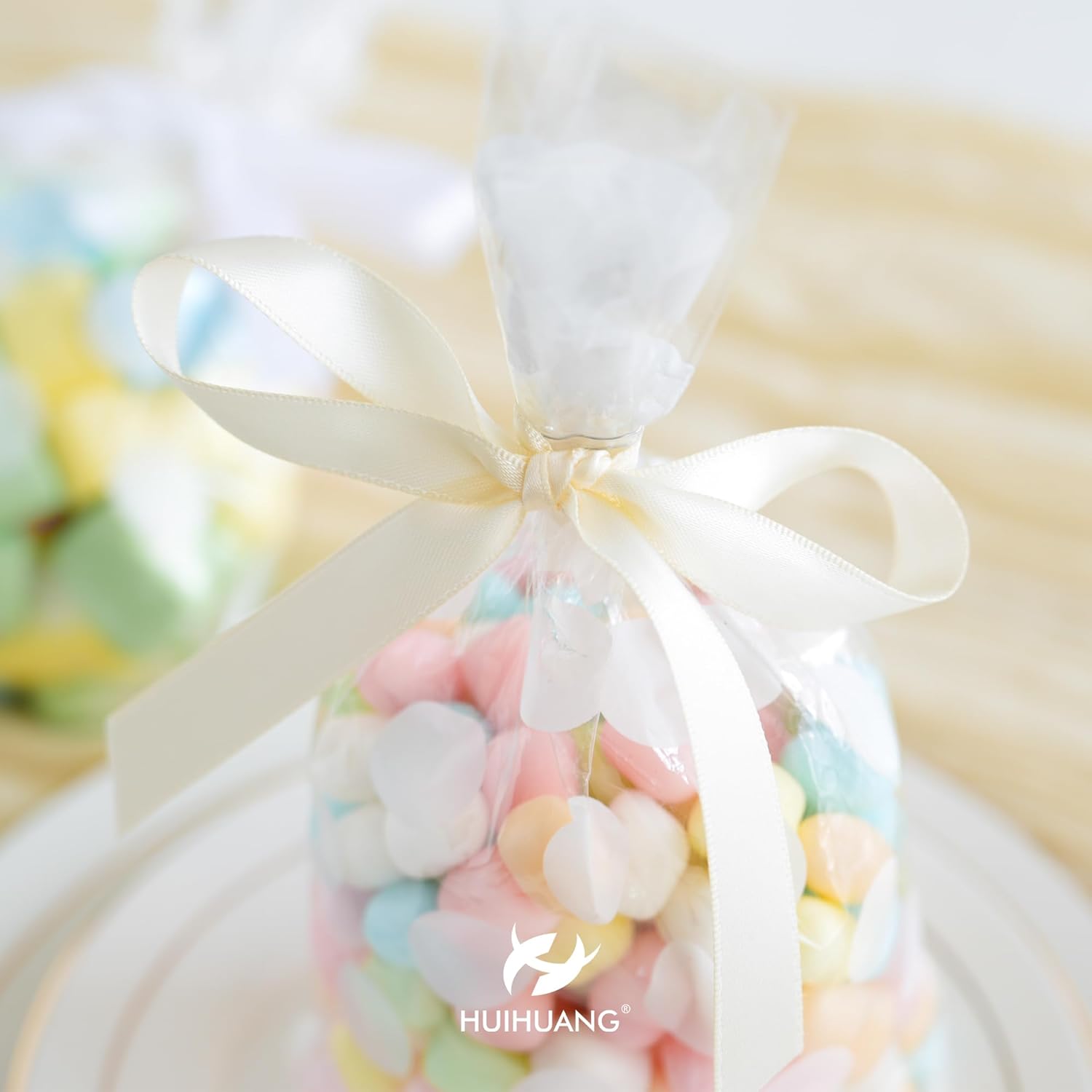 HUIHUANG Ivory Satin Ribbon 1/2 inch X 50 Yards Continuous, Off-White Double-Faced Satin Ribbon for Gift Wrapping, Bows, DIY Crafts, Flower Bouquet, Wedding Bridal Shower Decor, Flower Crowns