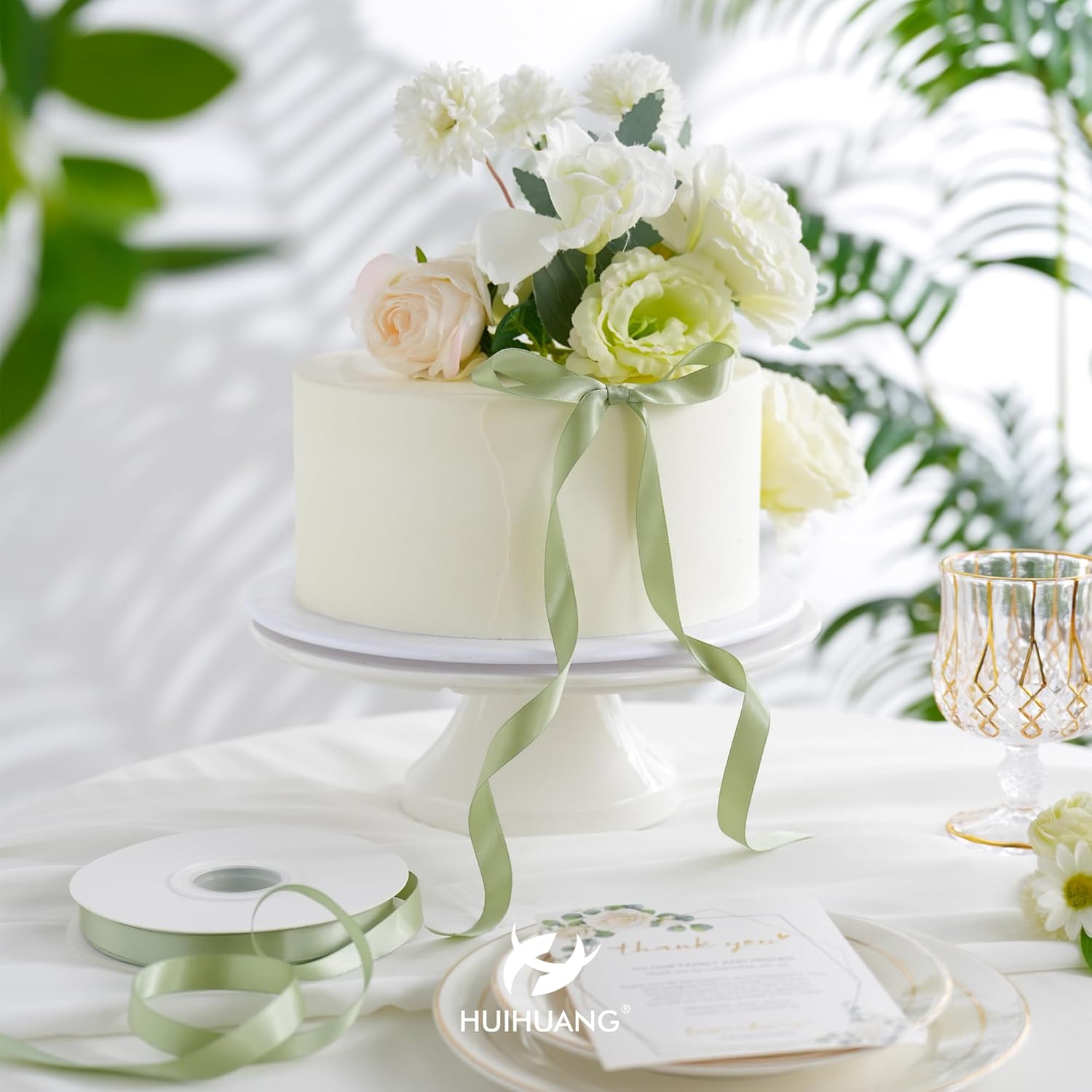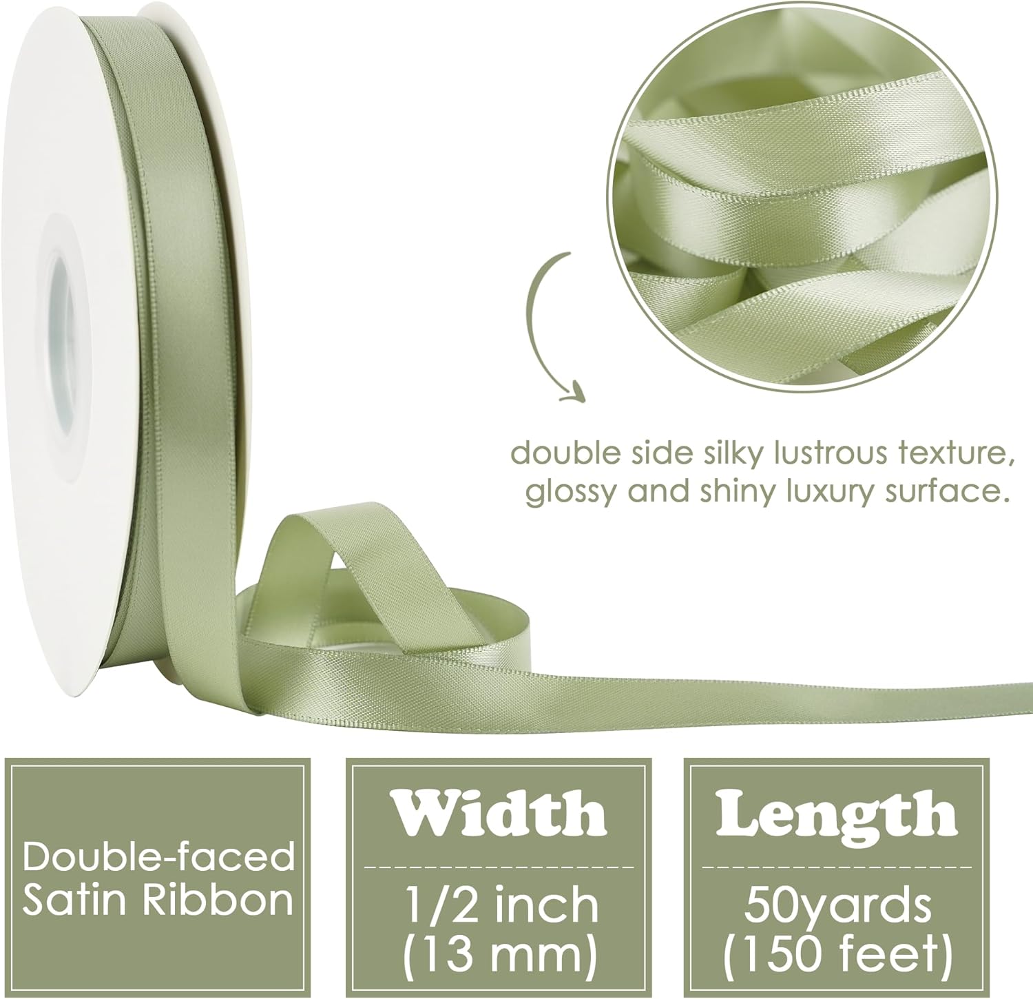HUIHUANG Sage Green Double Faced Satin Ribbon 1/2 inch X 50 Yards Continuous, Dusty Sage Satin Ribbon for Gift Wrapping, Bows, DIY Crafts, Flower Bouquet, Bridal Shower Wedding Decor