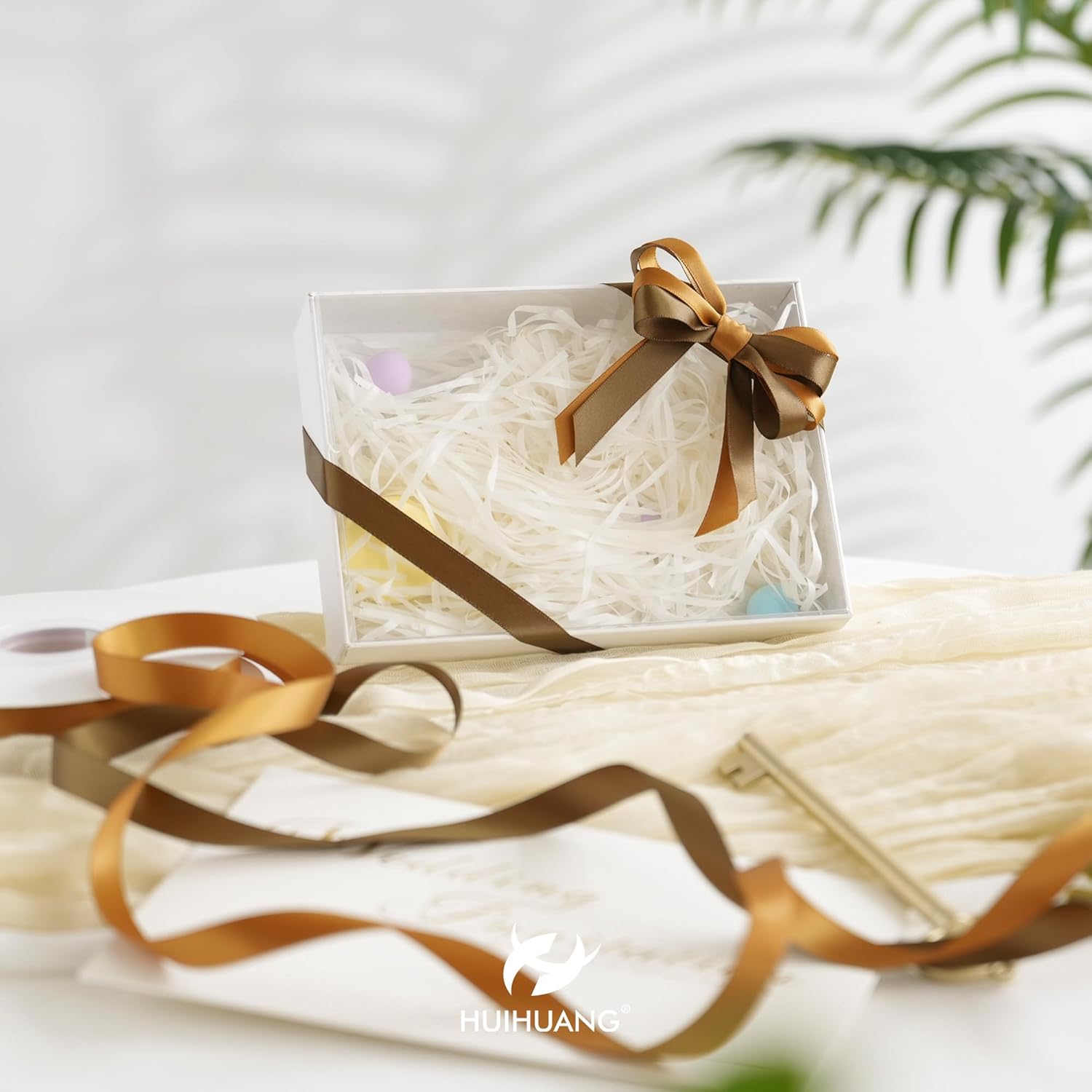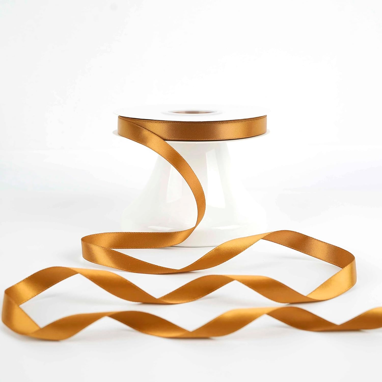 - Size: Copper satin ribbon measures 1/2" wide and continuous 50 yards(150 feet) long in a complete roll in a paper box. Perfect size for various decorations and crafts