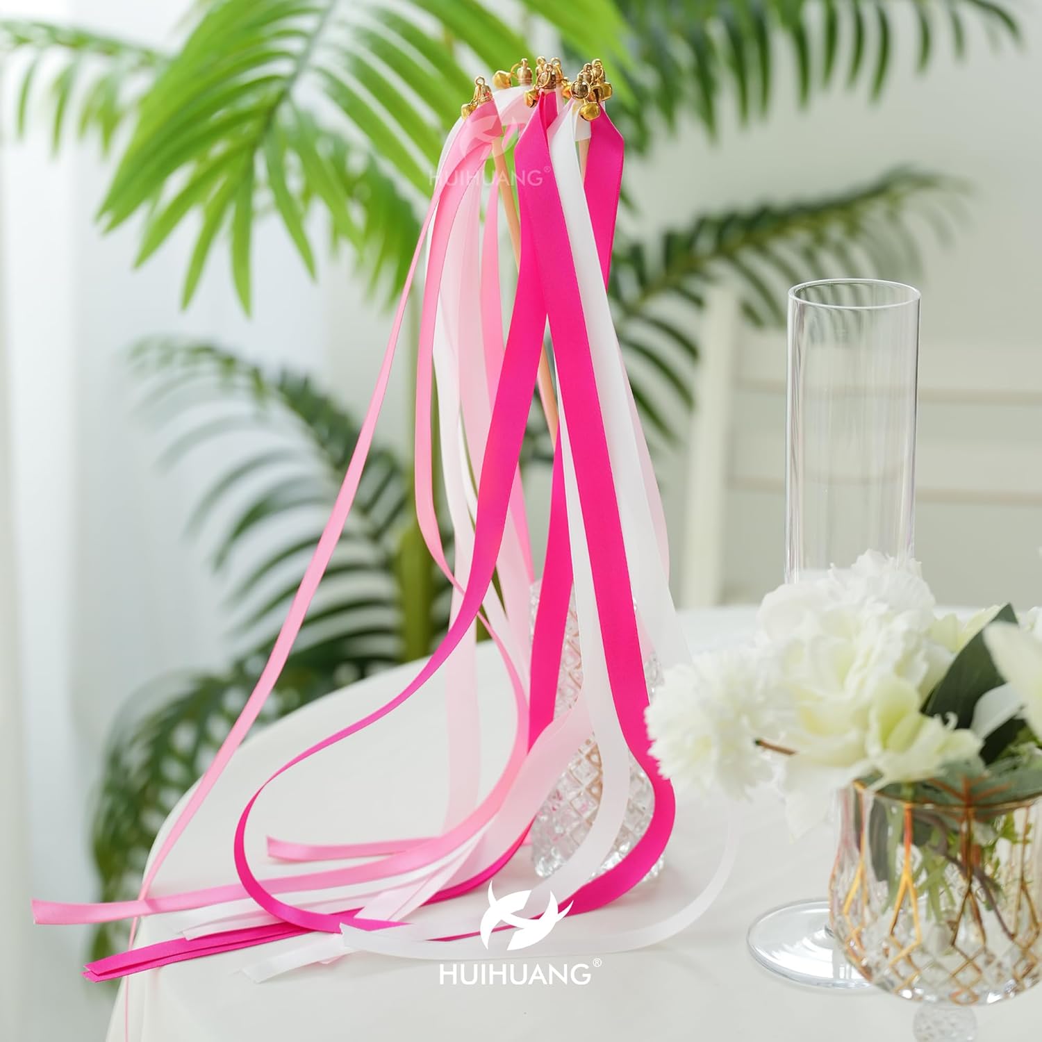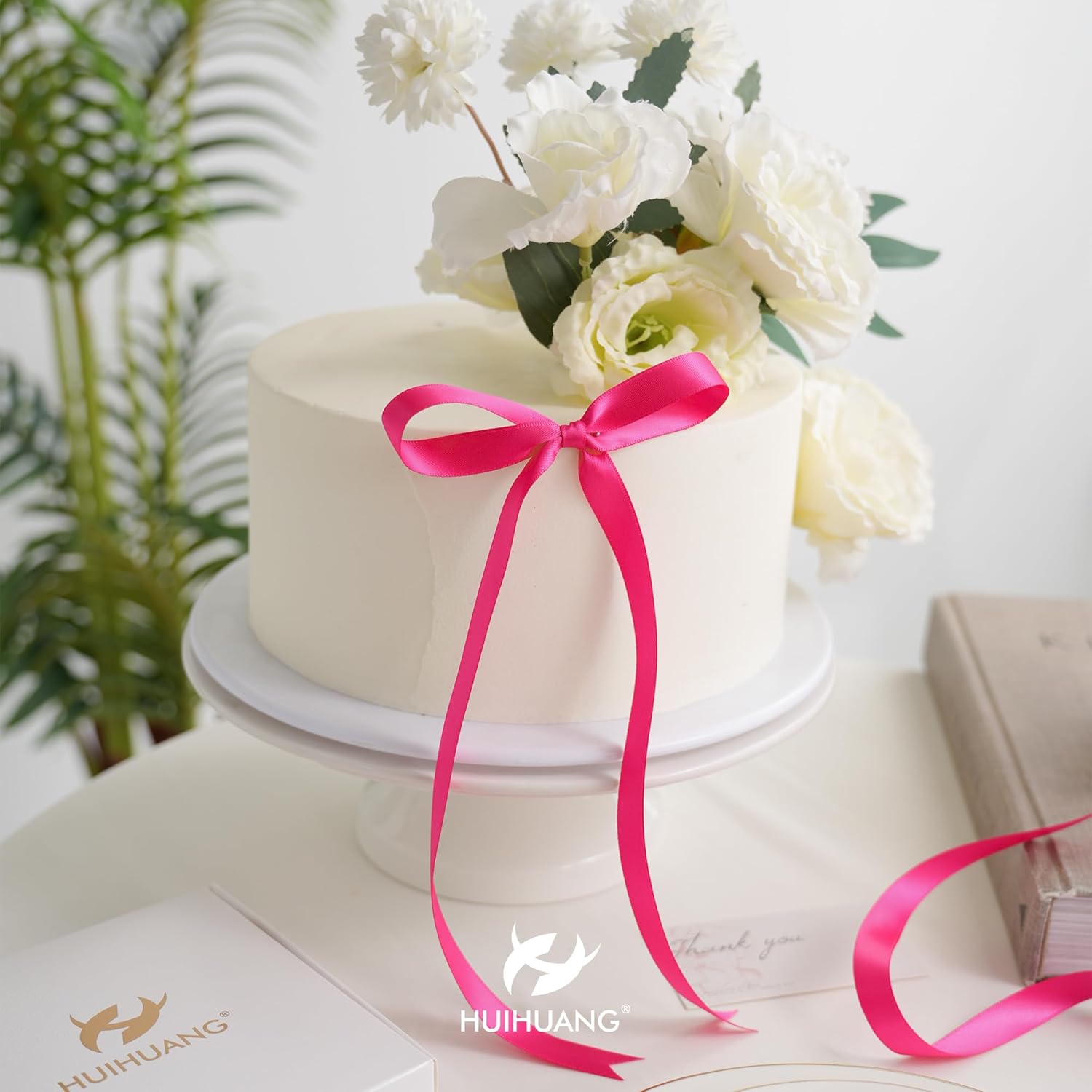 HUIHUANG Hot Pink Satin Ribbon 1/2 inch X 50 Yards Continuous Fuchsia Double-Faced Satin Ribbon for Gift Wrapping, Bows, DIY Crafts, Flower Bouquet, Wedding Bridal Shower Decor, Flower Crown
