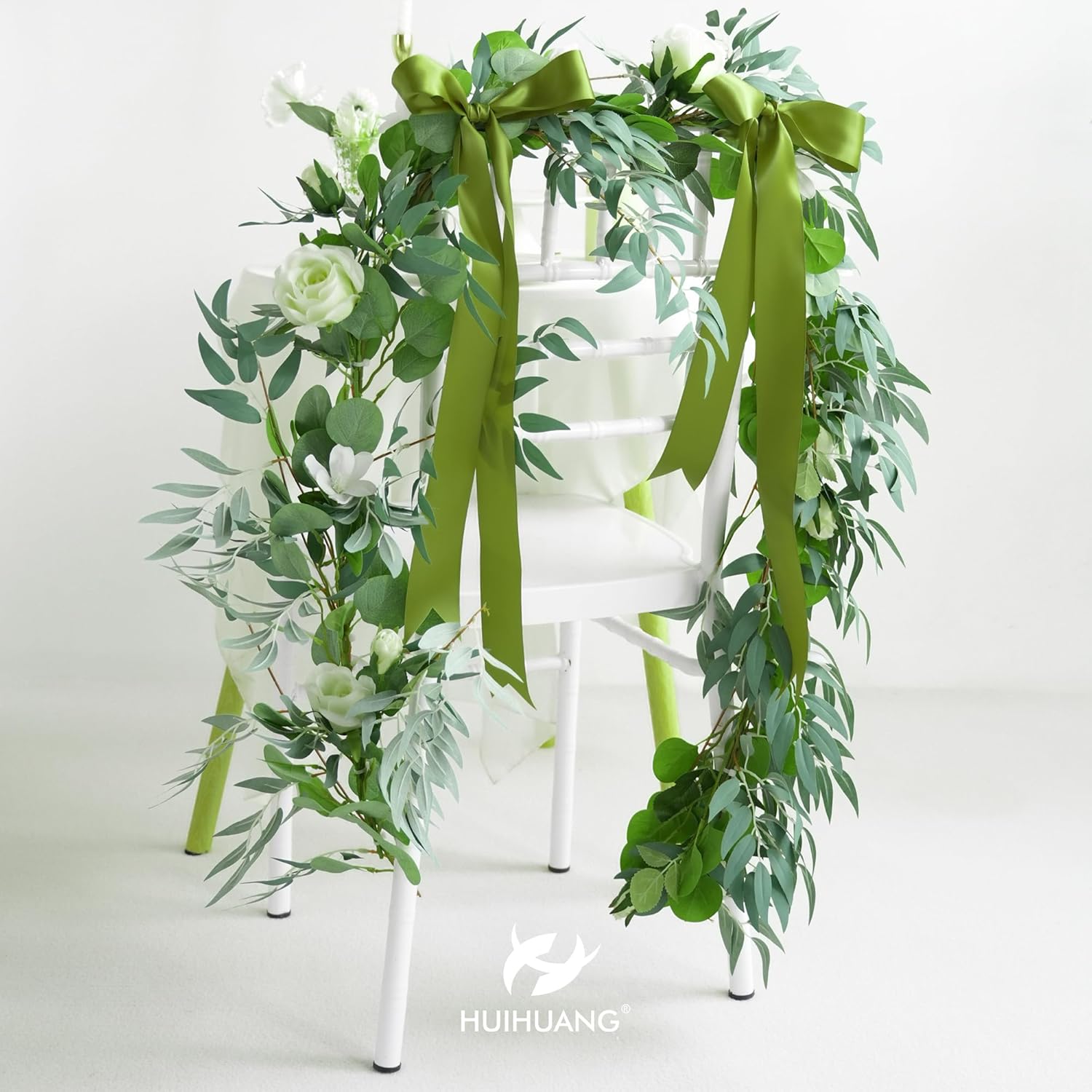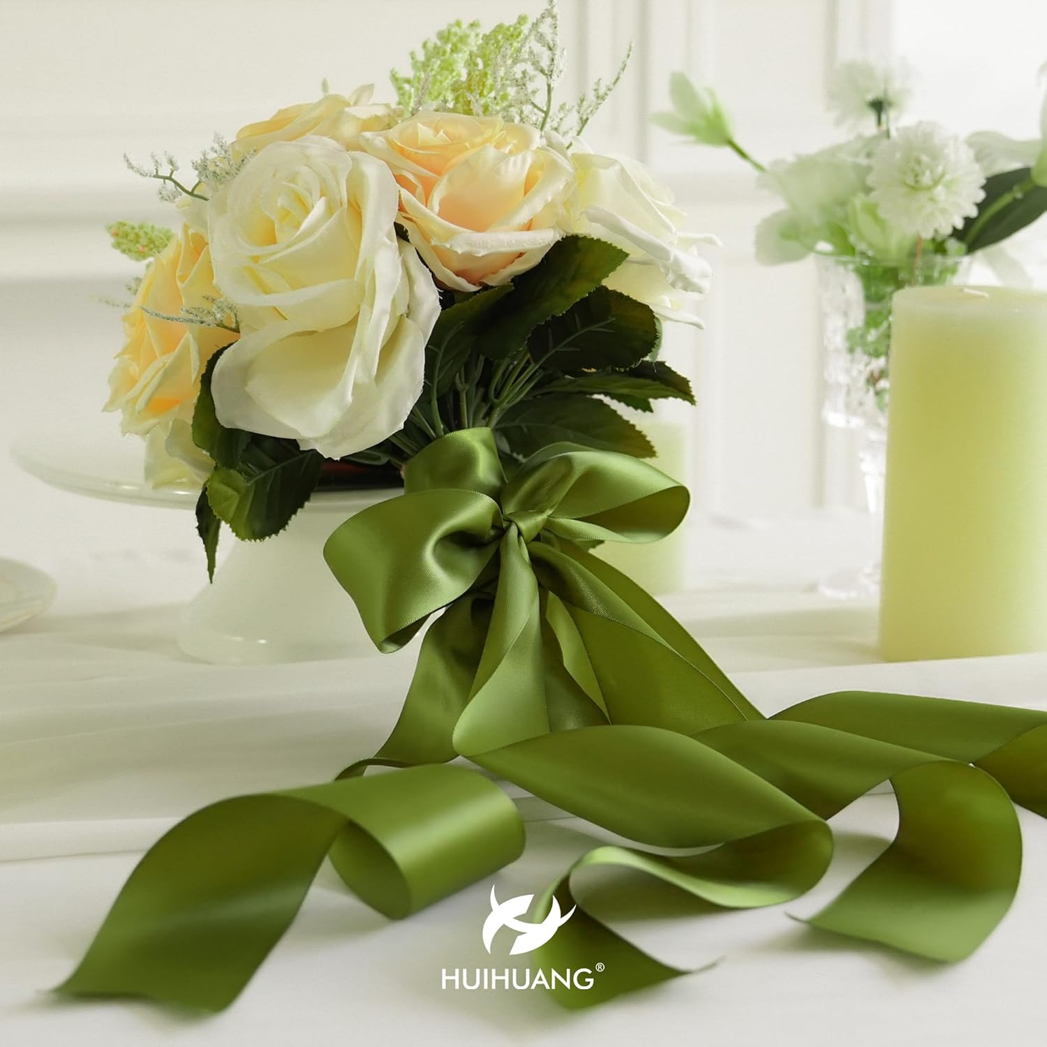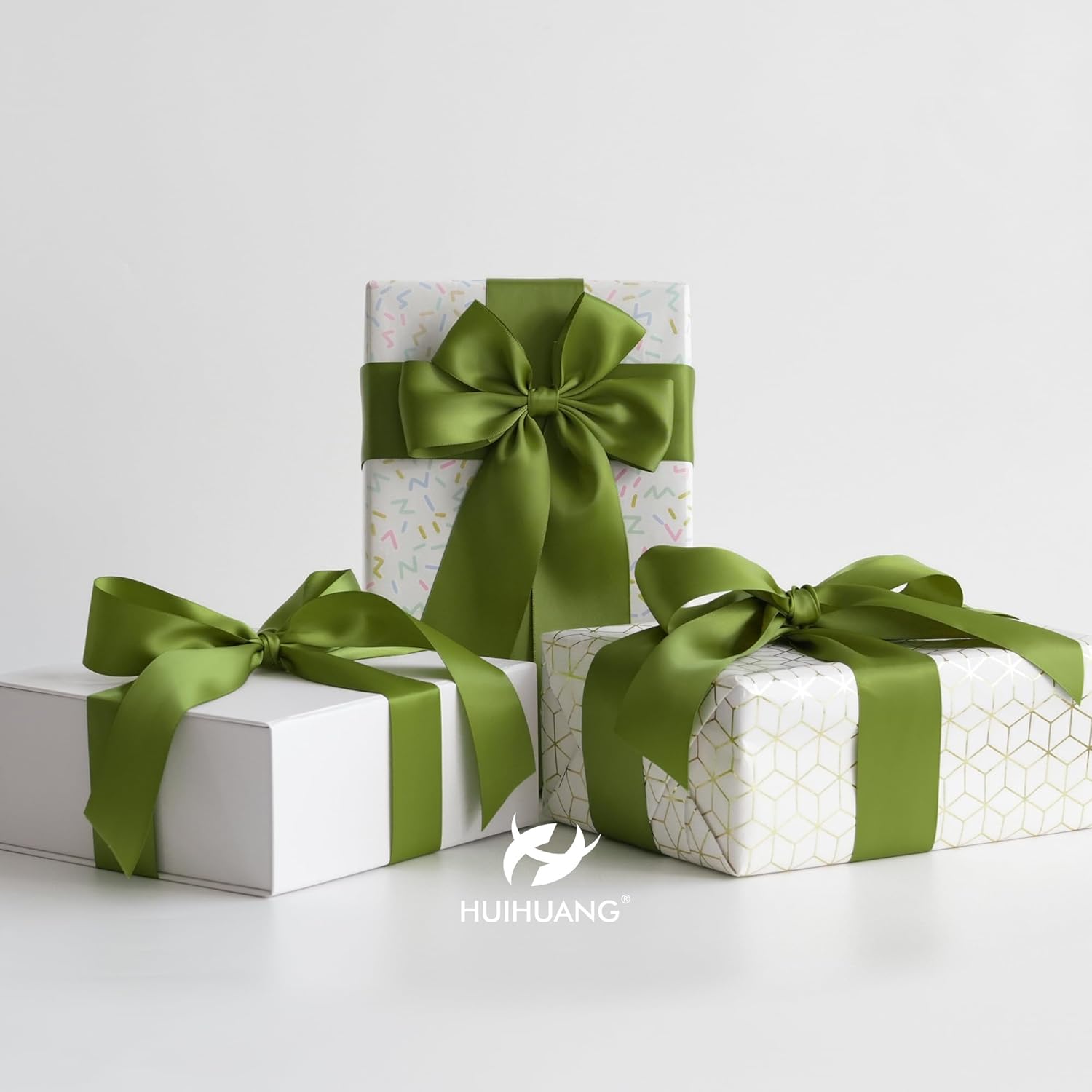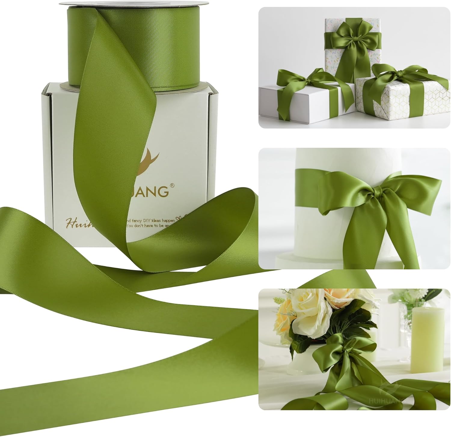 HUIHUANG Olive Green Ribbon 2 inch Wide Double Faced Satin Ribbon Green Ribbon for Gift Wrapping, Bows Making, Flower Bouquet, DIY Crafts, Bridal Shower, Holiday Party Decor -25 Yards/Roll