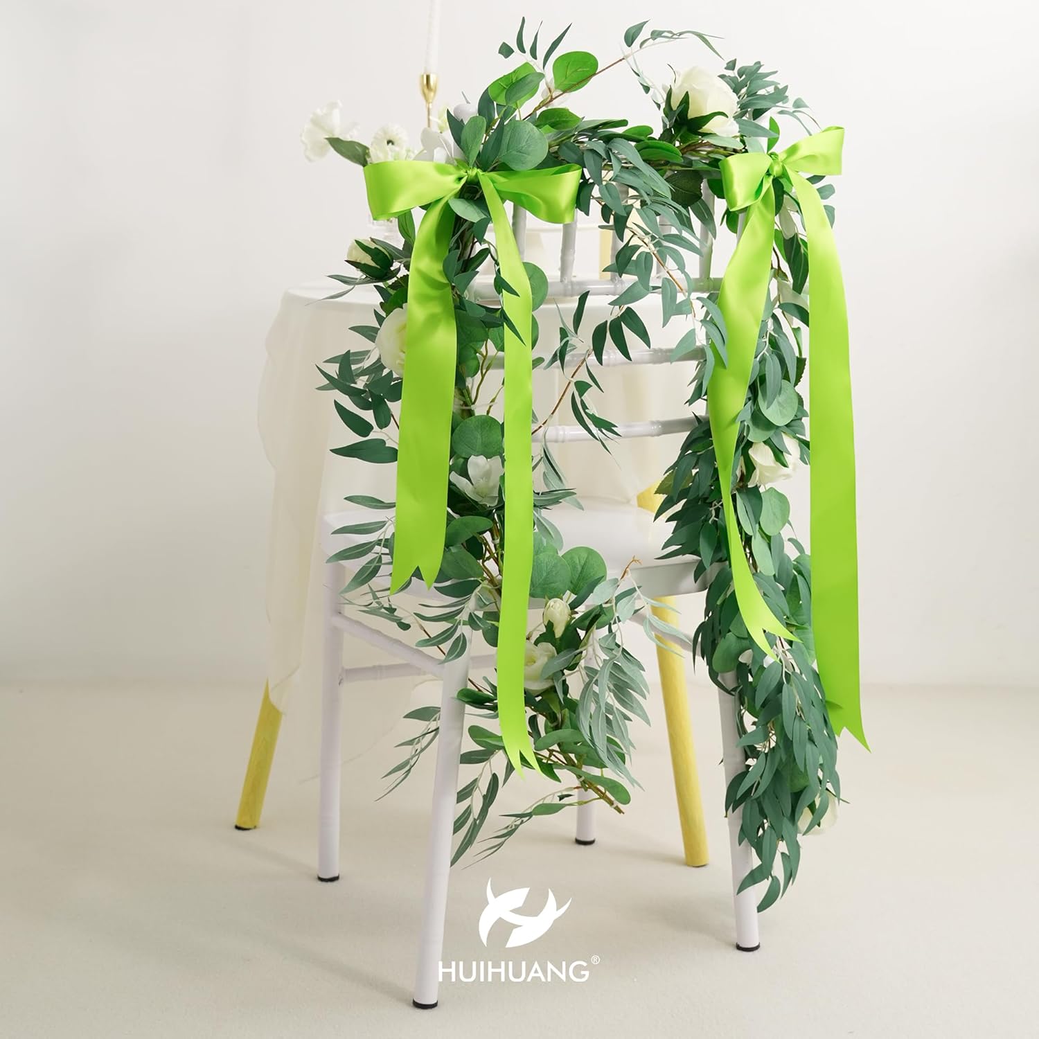 HUIHUANG Lime Green Satin Ribbon - 2 inch Wide, Double Faced, Neon Green for Gift Wrapping, Bows, Bouquets, DIY Crafts, Weddings & Parties - 25 Yards/Roll