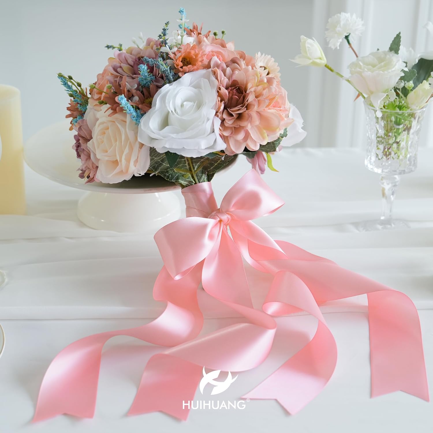 HUIHUANG Pink Satin Ribbon 2 inch Wide Double Faced Satin Ribbon Pink Ribbon for Gift Wrapping, Bows Making, Flower Bouquet, DIY Crafts, Wedding Bridal Shower, Holiday Party Decor-25 Yards/Roll