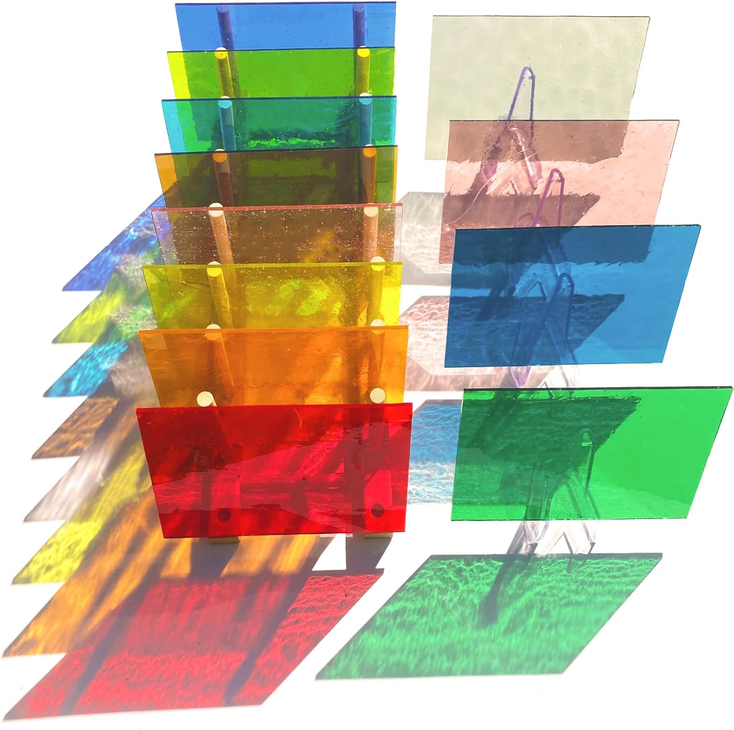 ILLUCKAI 12 Sheets Transparent Stained Glass Sheet Rainbow Colors, 6 x 4 inch Stained Glass Supplies Mosaic Glass Tiles for Stained Glass Artwork Mosaic Crafts
