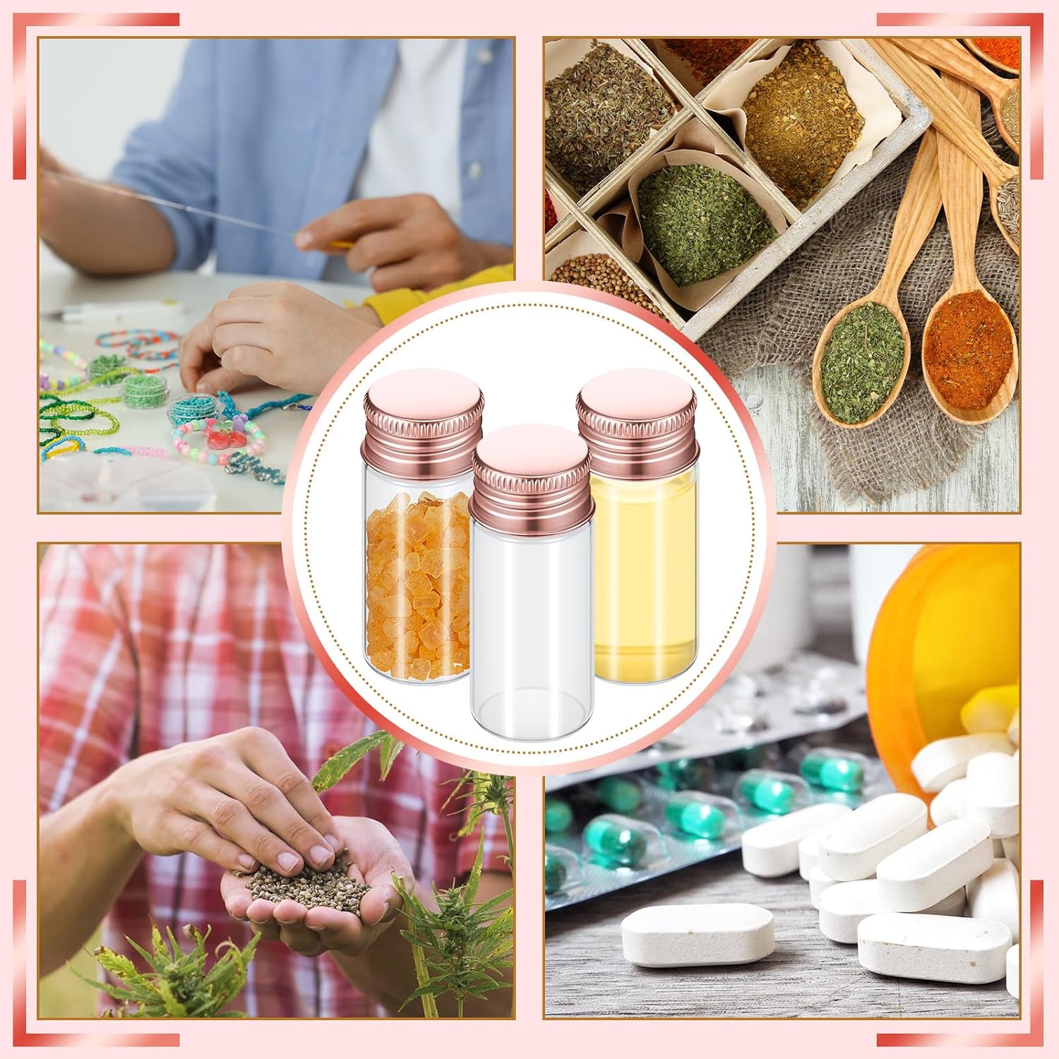 - Where to Use: the tiny bottles with screw top are useful, suitable for so many situations, such as the spice, seeds, perfume, jewelry and more can be contained inside, which can make you to save your space, and make your places tidier