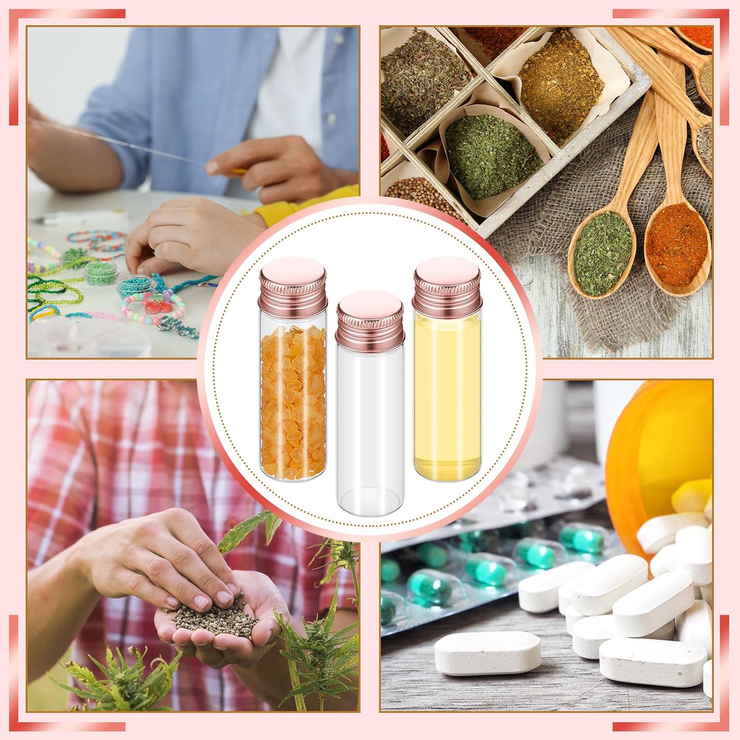 - Where to Use: the tiny bottles with screw top are useful, suitable for so many situations, such as the spice, seeds, perfume, jewelry and more can be contained inside, which can make you to save your space, and make your places tidier