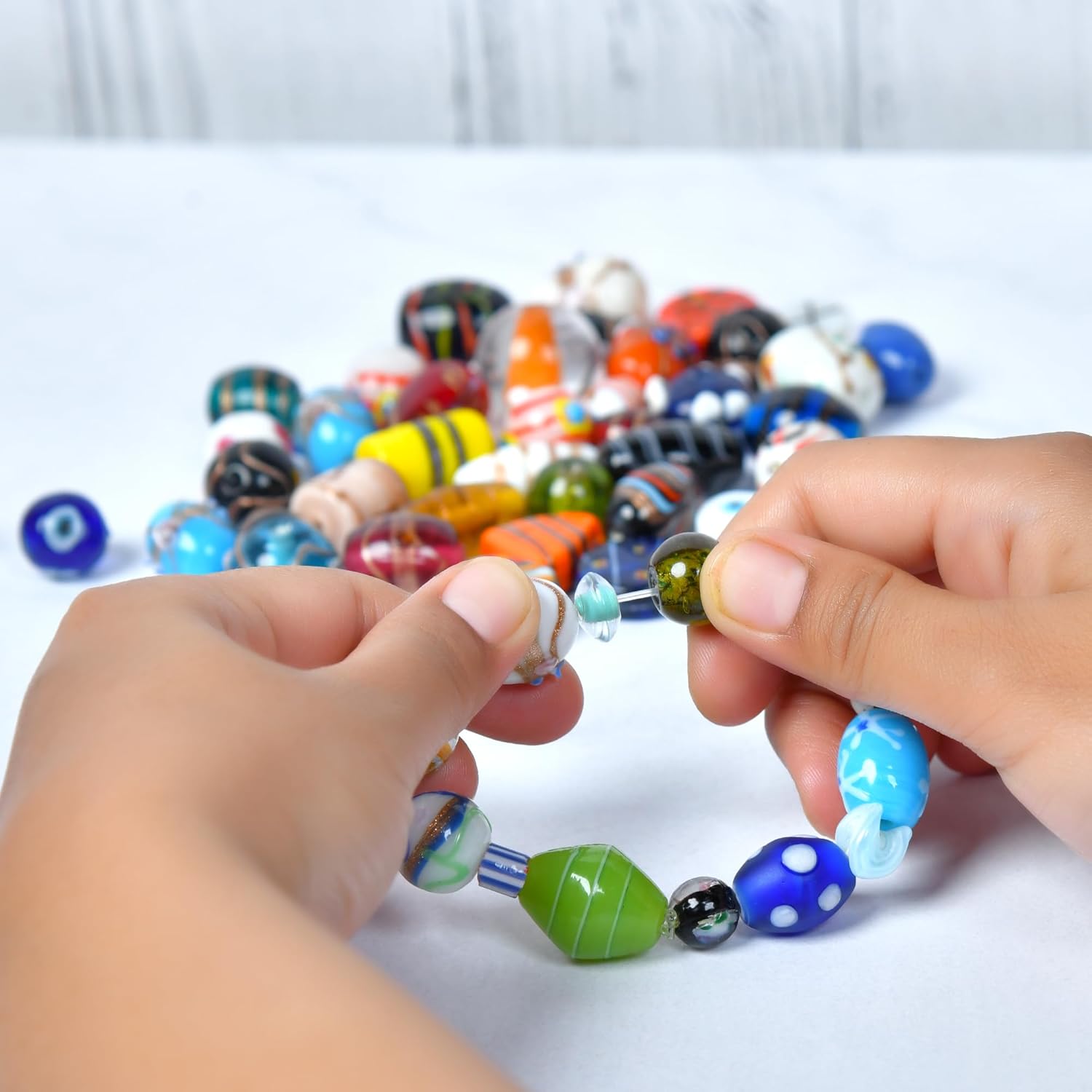 1 LB Bag of Assorted Glass Beads for Jewelry Making, Lampwork Murano Bead Mix for Bracelets and Necklaces, Crafting Beads Supplies Kit, Large & Small Beads (Assorted 200)