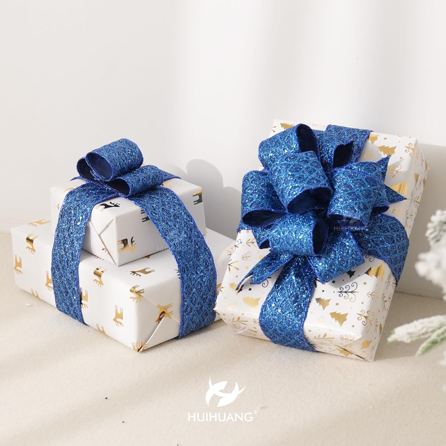 - Color: Navy blue glitter wired ribbon brings a bright and beautiful sparkly touchness to your decoration craft ideas and holiday gift wrapping, especially for Christmas tree decorations