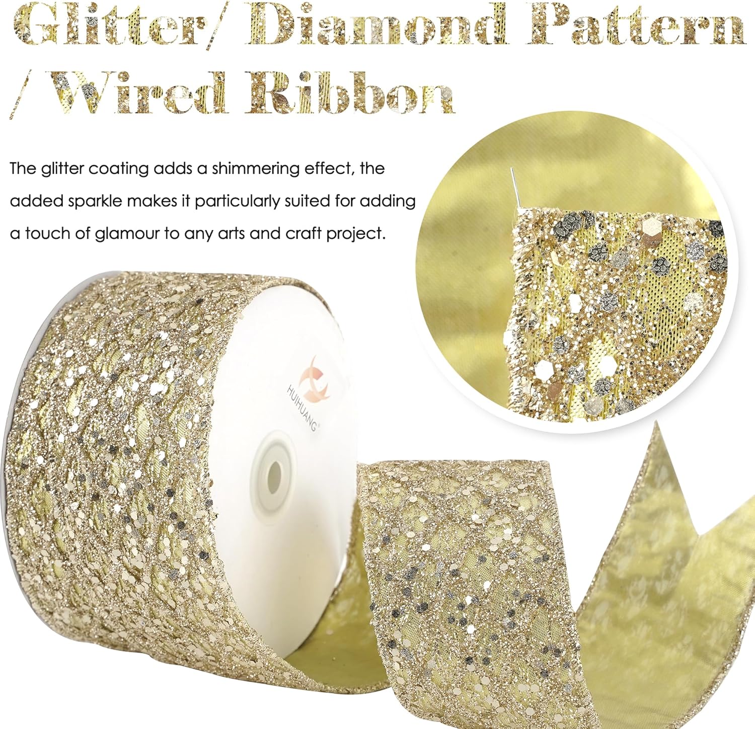 - Size and Package: This wired ribbon measures 2-1/2" wide and 10 yards(30 feet ) continuous long each roll, and the glitter diamond-shaped pattern on the wired ribbon adds a shiny and geometric element to Christmas decorations