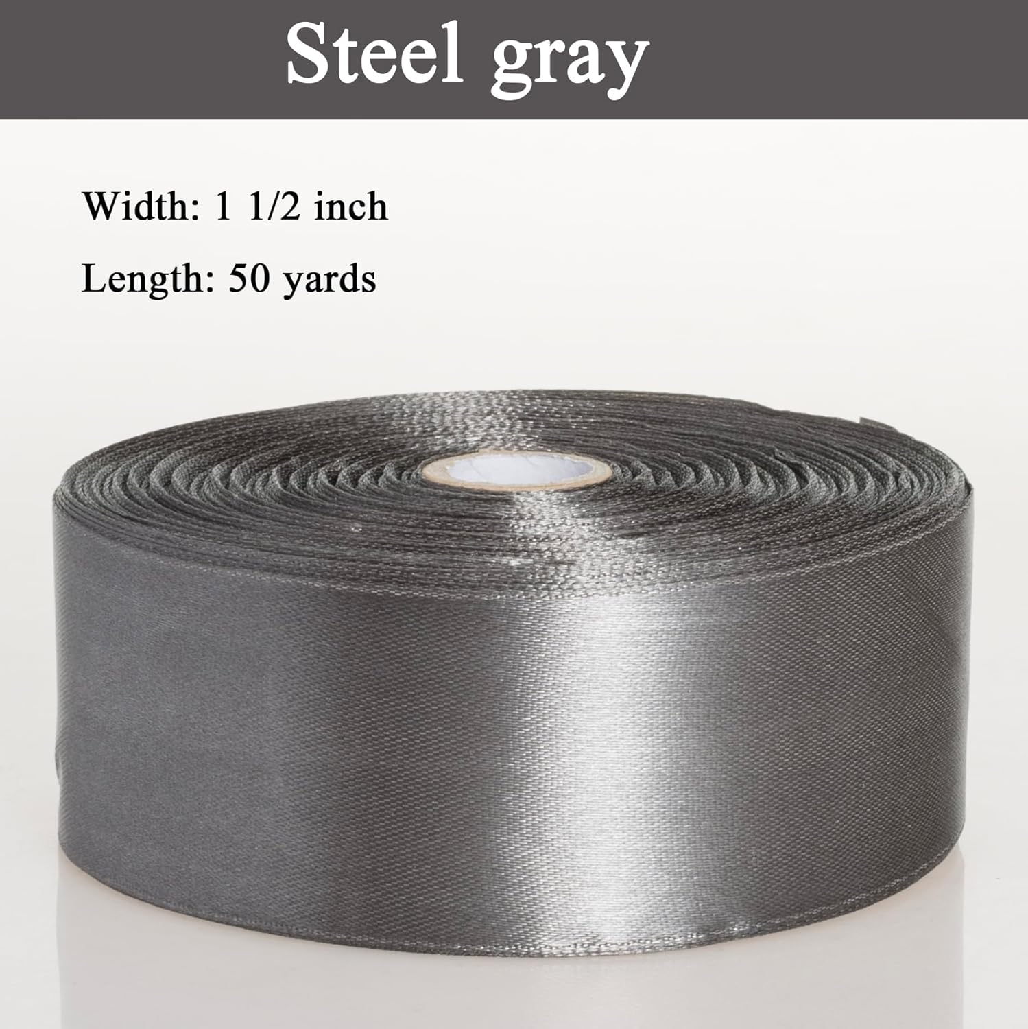 1 1/2 Inch Steel Gray Solid Satin Ribbon, 50 Yards Craft Fabric Ribbon for Gift Wrapping Floral Bouquets Wedding Party Decoration