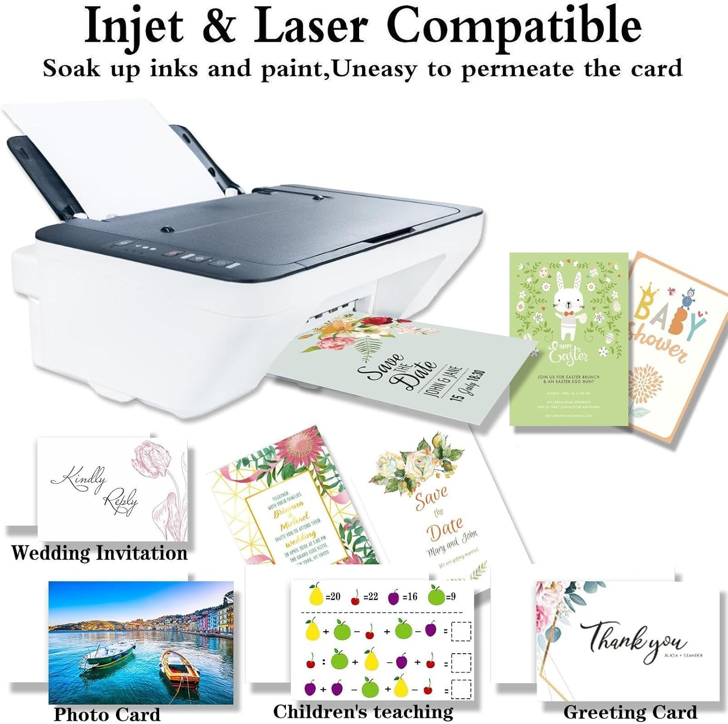 - INKJET AND LASER PRINTERS FRIENDLY: Sturdy and versatile, our thick notecards are compatible with most inkjet, They can not only print your favorite patterns but also write text for it. It is suitable for most types of printers on the market. laser printers, and photocopy machines. Please manually check if your printer can handle their size and weight.
