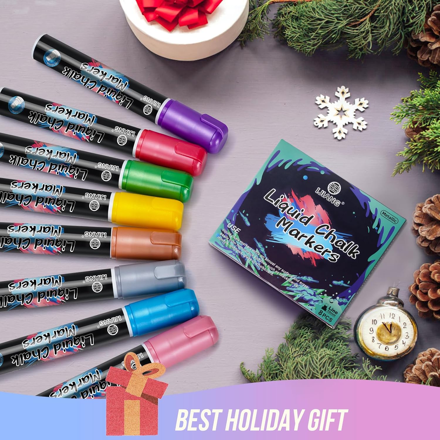 - Special Design of The 3-in-1 Nib:IJIANG 8 metallic jumbo chalk markers, each with a 10mm 3-in-1 nib in vibrant colors. The chalk pen have a 3-in-1 nib for all your drawing needs, and rectangular nib allows you to adjust the angle of the nib to get wide, thick and thin lines