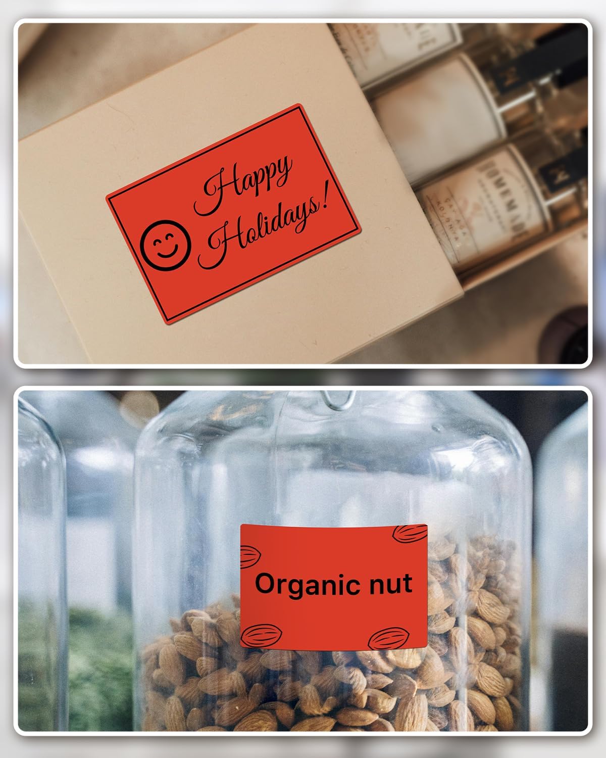 iEager 3" x 2" Thermal Labels, Rectangle Thermal Printer Stickers, Self-Adhesive Durable Sticker with Perforation Line, 500 Labels/Roll, Red