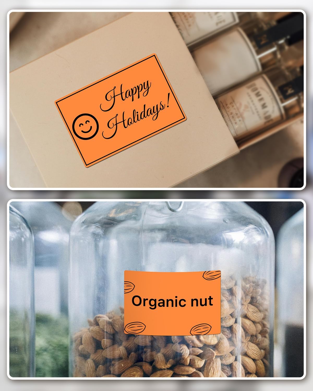 - Specifications: iEager 3" x 2" orange thermal label with perforation line, 500 labels/roll. Paper tube inner diameter 1". No ink, toner or ribbons needed