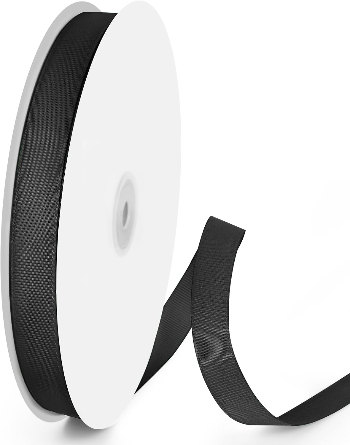 100 Yards 5/8 inch Grosgrain Ribbon, Solid Color Fabric Ribbon Perfect for Gift Wrapping, Wedding, Handmade Bows, Floral Bouquets and Party Decoration(Black)