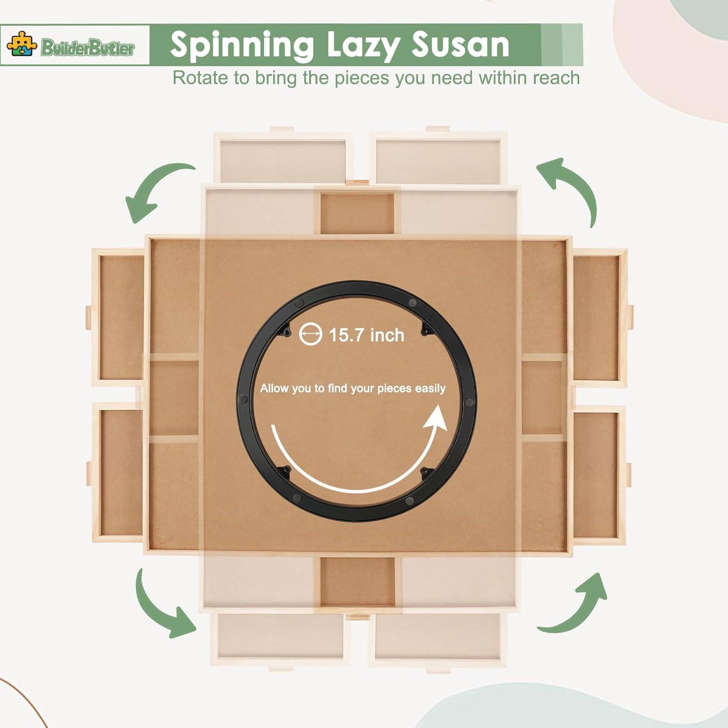 - Spinning Lazy Susan Design: The BuilderButler rotating puzzle board features a smooth Lazy Susan mechanism, allowing for effortless 360Β° rotation. This innovative swivel system lets you easily reach any section of your puzzle without moving around, enhancing both comfort and efficiency. The steady rotation provides a seamless puzzling experience, adding an extra layer of fun and strategic interaction, making it the perfect tool for puzzle enthusiasts.