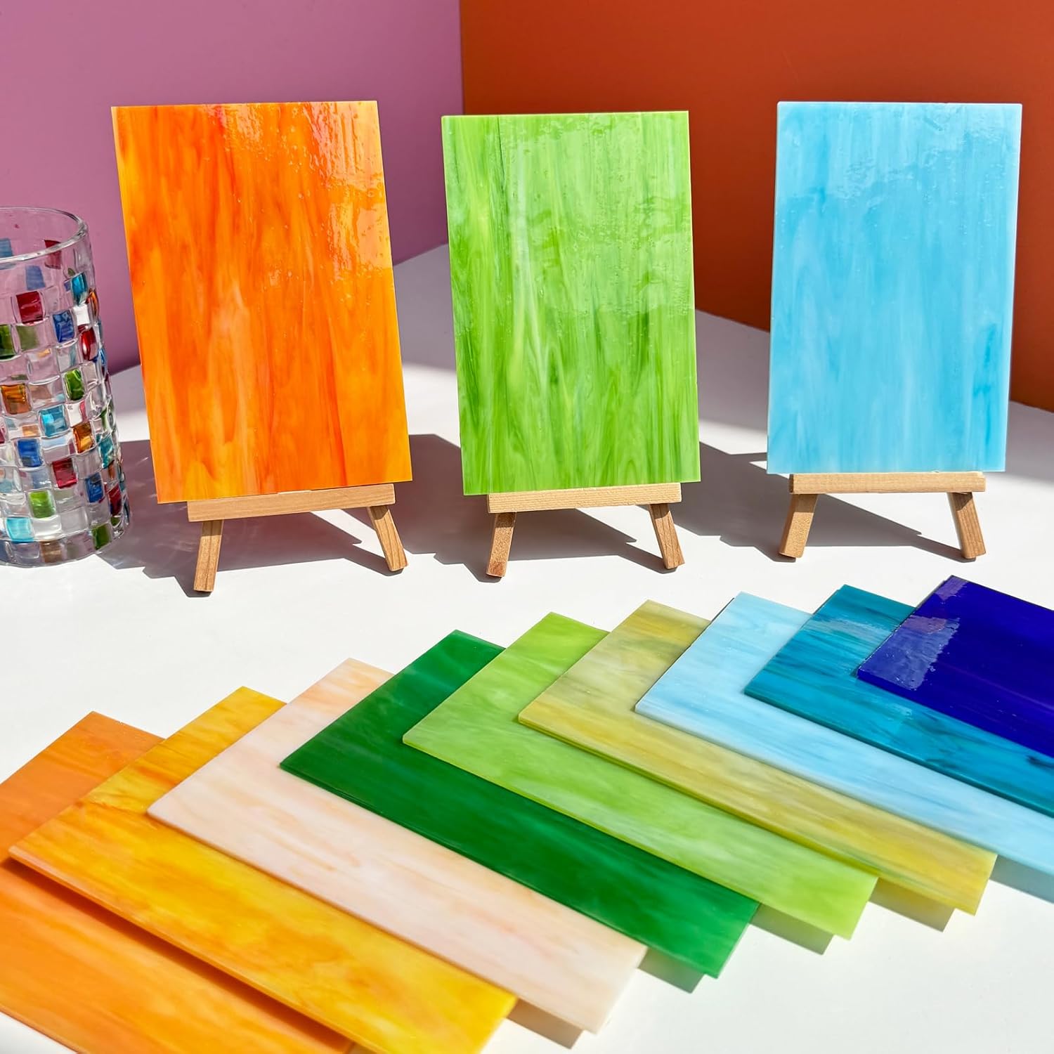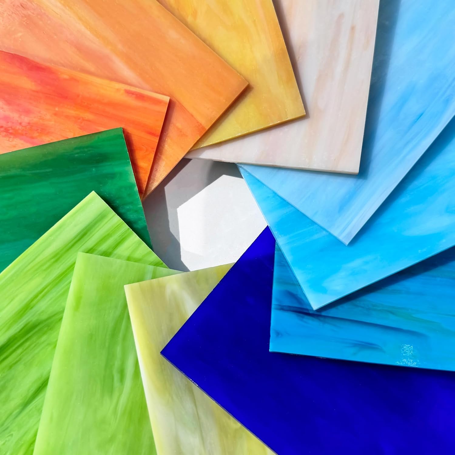 - Package Includes: 12 sheets assorted green orange blue colors stained glass sheet variety pack