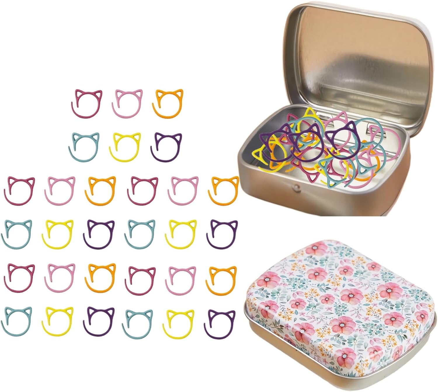 Stitch Markers for Crocheting Cat Stitch Markers with Box Metal Spiral Stitch Markers for Knitting Crochet Stitch Markers Rings Knitting and Crochet Notions (30)