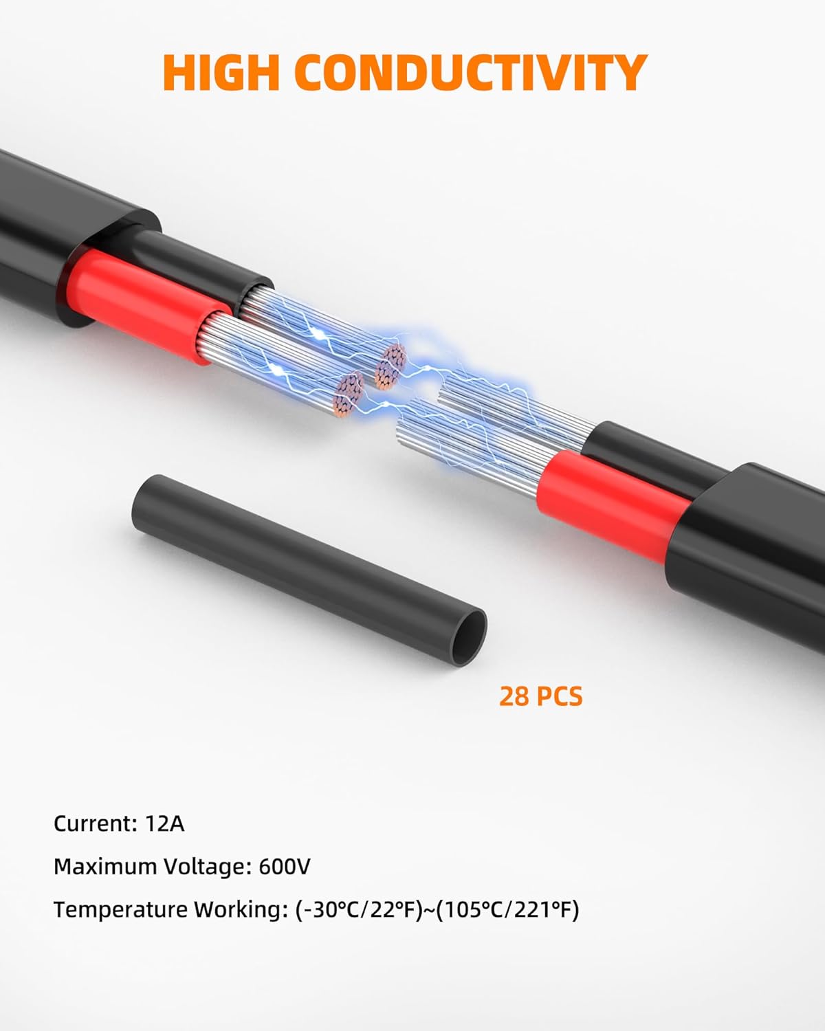 - RELIABLE PERFORMANCE: 10 AWG wire Waterproof level: IP68; Flame retardant rating: VW-1; Rated voltage: 600V, with compatibility for 5V, 12V, and 24V up to 600V applications; Operating temperature: -30°F to 221°F