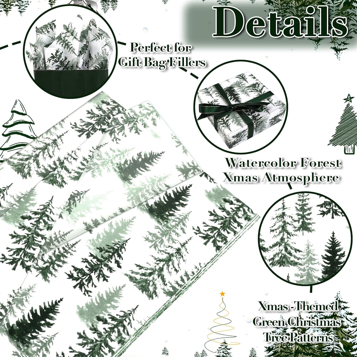 - 🎄🎁🎄【GREAT QUALITY】: Our watercolor Christmas tree tissue paper is made of high quality 17g tissue paper with clear graphic printing, durable and not easy to tear. You can fully enjoy the process when you are making craft works, gift wrapping and decorating.
