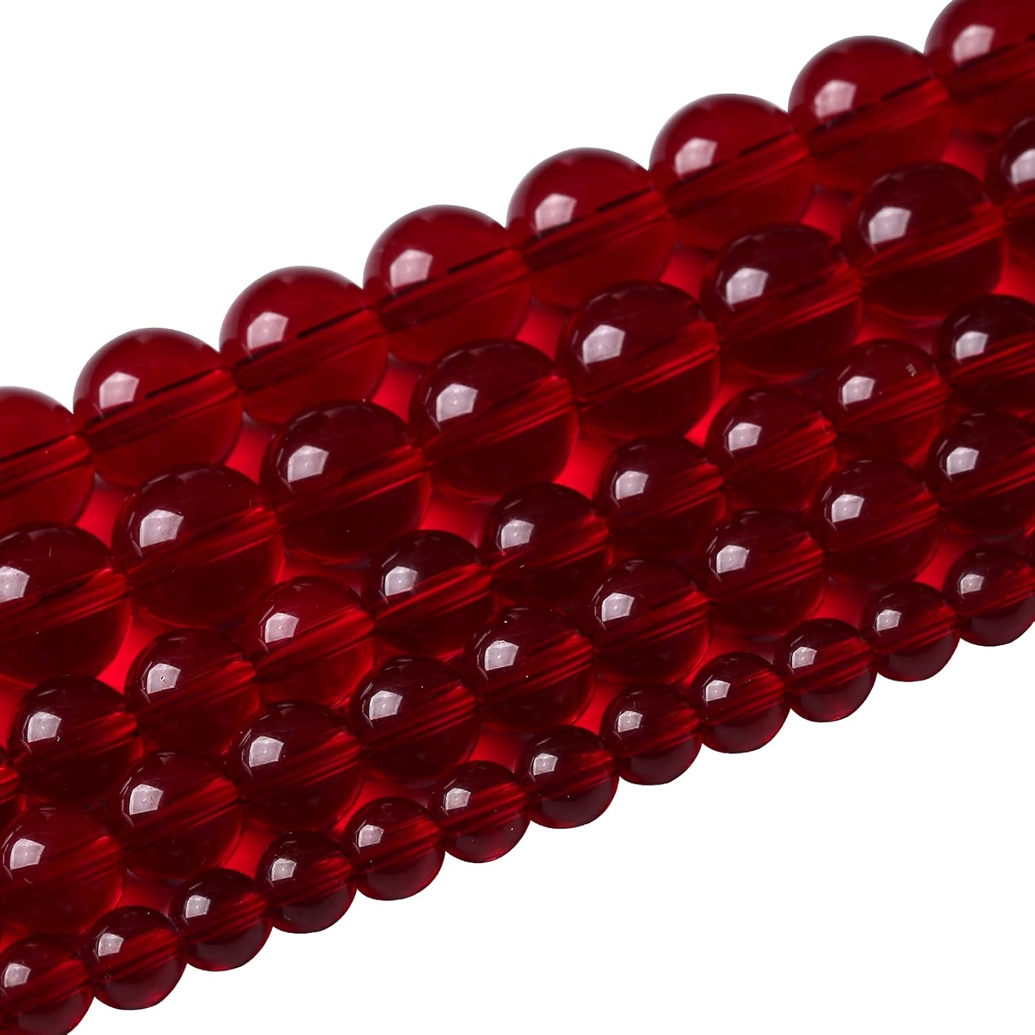 102pcs 8mm Smooth Garnet Red Glass Crystal Round Loose BeadsFor Jewelry Making DIY Bracelet Necklace Accessories 32" 2 Strand