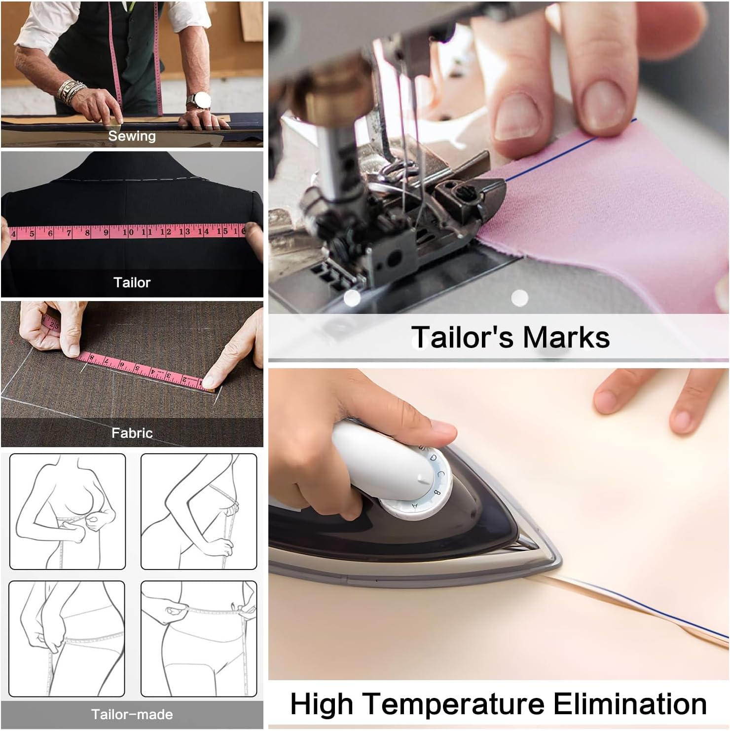 - 【Sewing supplies】: Four-color disappearing ink pen, multi-purpose, including red, blue, white and black, each color provides 5 replacement refills, you can choose the right color according to different fabrics. There are a total of 20 replacement refills and 5 pen holders, 1 pencil case, 1 measuring tape, providing you with more quantity.