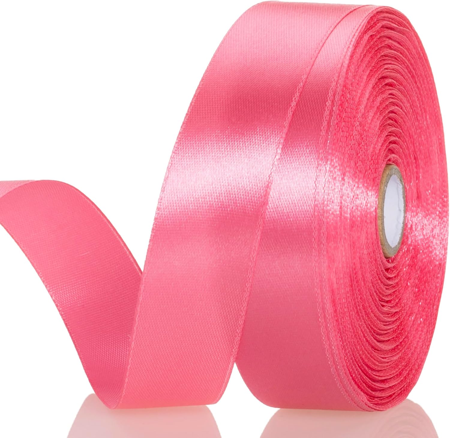 1 Inch Brink Pink Solid Satin Ribbon, 50 Yards Craft Fabric Ribbon for Gift Wrapping Floral Bouquets Wedding Party Decoration