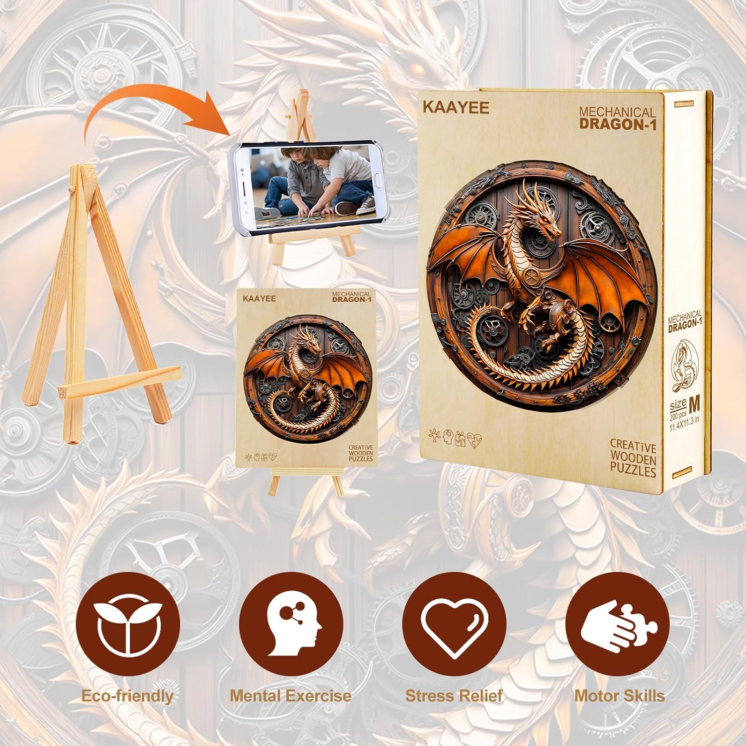 - Stunning 3D Mechanical Dragon Visuals: this 3D visual wooden puzzle features a mechanical dragon in all its glory. The dragon's body is covered in detailed mechanical parts, from gears that seem to turn to rivets holding its plates together. Its wings, with a metallic sheen, appear to be ready to unfurl and take flight. As you piece together the puzzle, the dragon gradually comes to life, offering an immersive visual experience that will captivate both kids and adults