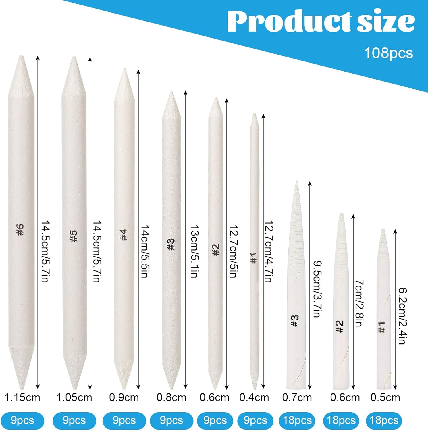 108 PCS Blending Stumps and Tortillions Blending Sticks, Oil Pastel Blending Pencil Soft Paper Felts Sketch Shading Pencils Colored Pencil Blender for Artists and Students Drawing Supplies (9 Sizes)