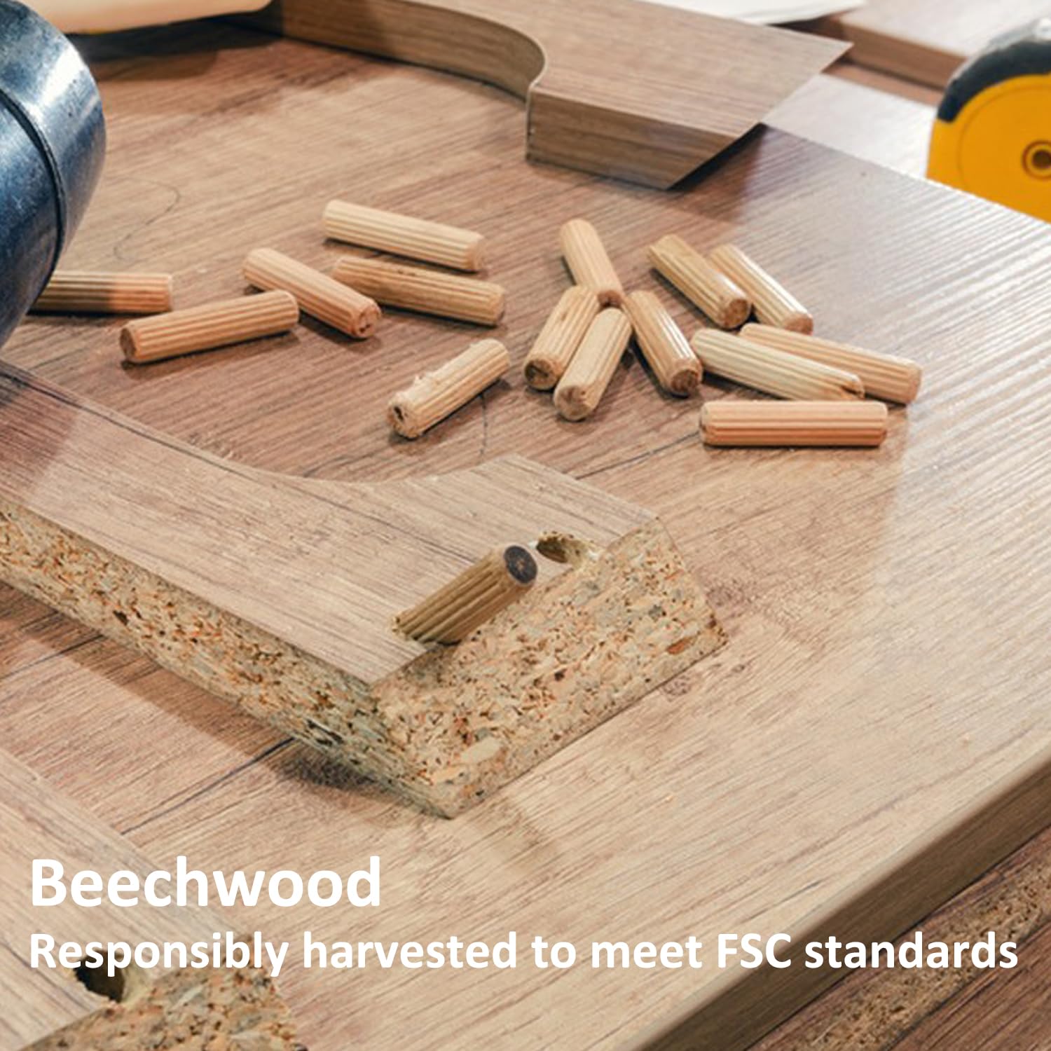 - FLUTED DESIGN:The wooden pins are kiln dried beech wood with flutes which eliminate trapped air for superior fastening.