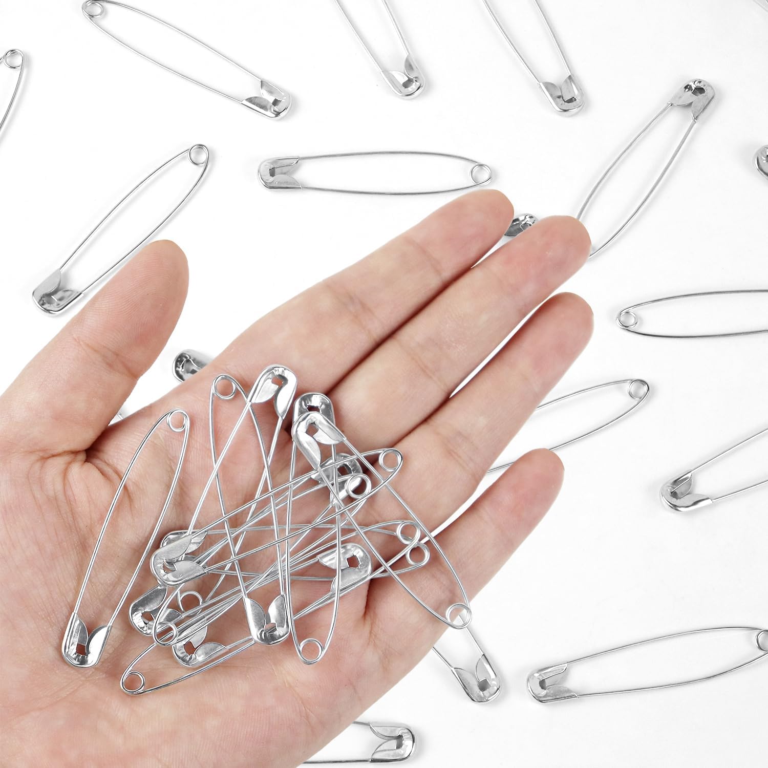 100 Pack Silver Safety Pins Assorted, Galvanized Steel Bulk Safety Pins for Sewing, Clothes, Arts & Craft (2.1 Inch / 54 mm)