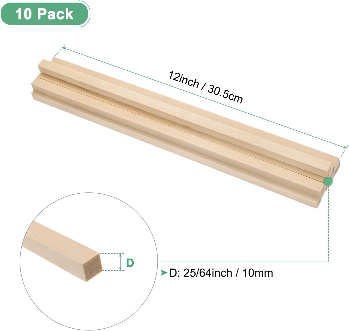 - [Size & Package] - 10pcs square dowel rods, width is 25/64"(1cm), length is 30.5cm / 12 inch