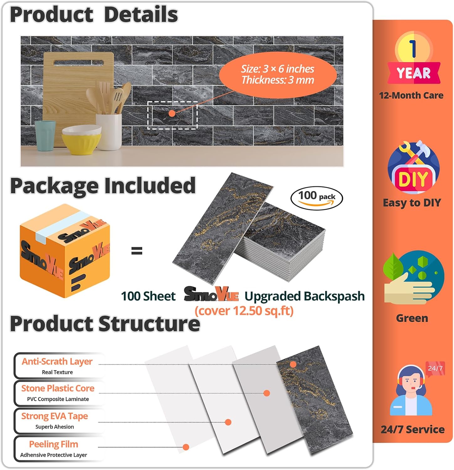 - ๐๐ซ๐๐ฆ๐ข๐ฎ๐ฆ ๐๐๐ซ๐๐จ๐ซ๐ฆ๐๐ง๐๐: Our peel and stick wall tiles are designed with high-performance PVC polymer material, offering waterproof, heat-resistant, stain-resistant, anti-scratch, and fadeless properties. Rest assured, the super-strong adhesive ensures the tiles stay securely in place!