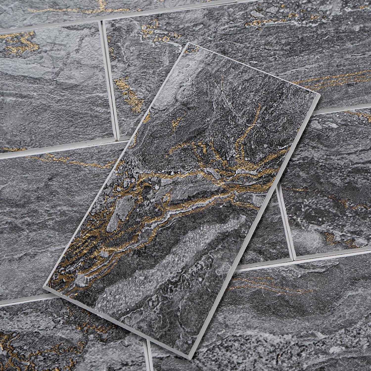 100 Pieces Peel and Stick Backsplash for Kitchen, 3" x 6" PVC Subway Tile 2025 Upgraded Gray-Gold Stone Backsplash Stick on Tile Elevate Kitchen Fireplace RV