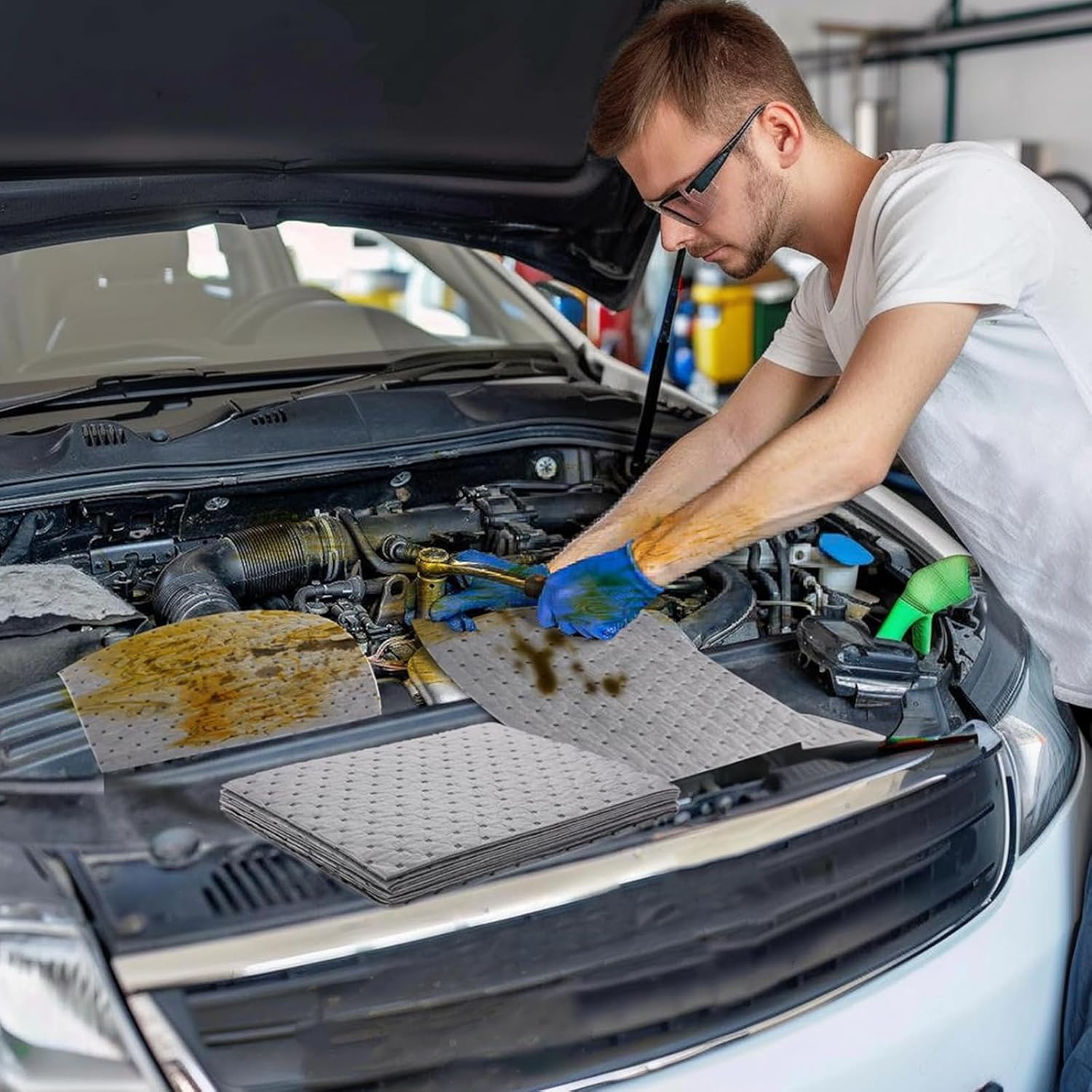 - 100 PADS FOR ANY SPILL - From oil change mats to garage accessories, these oil spill absorbent pads handle all leaks