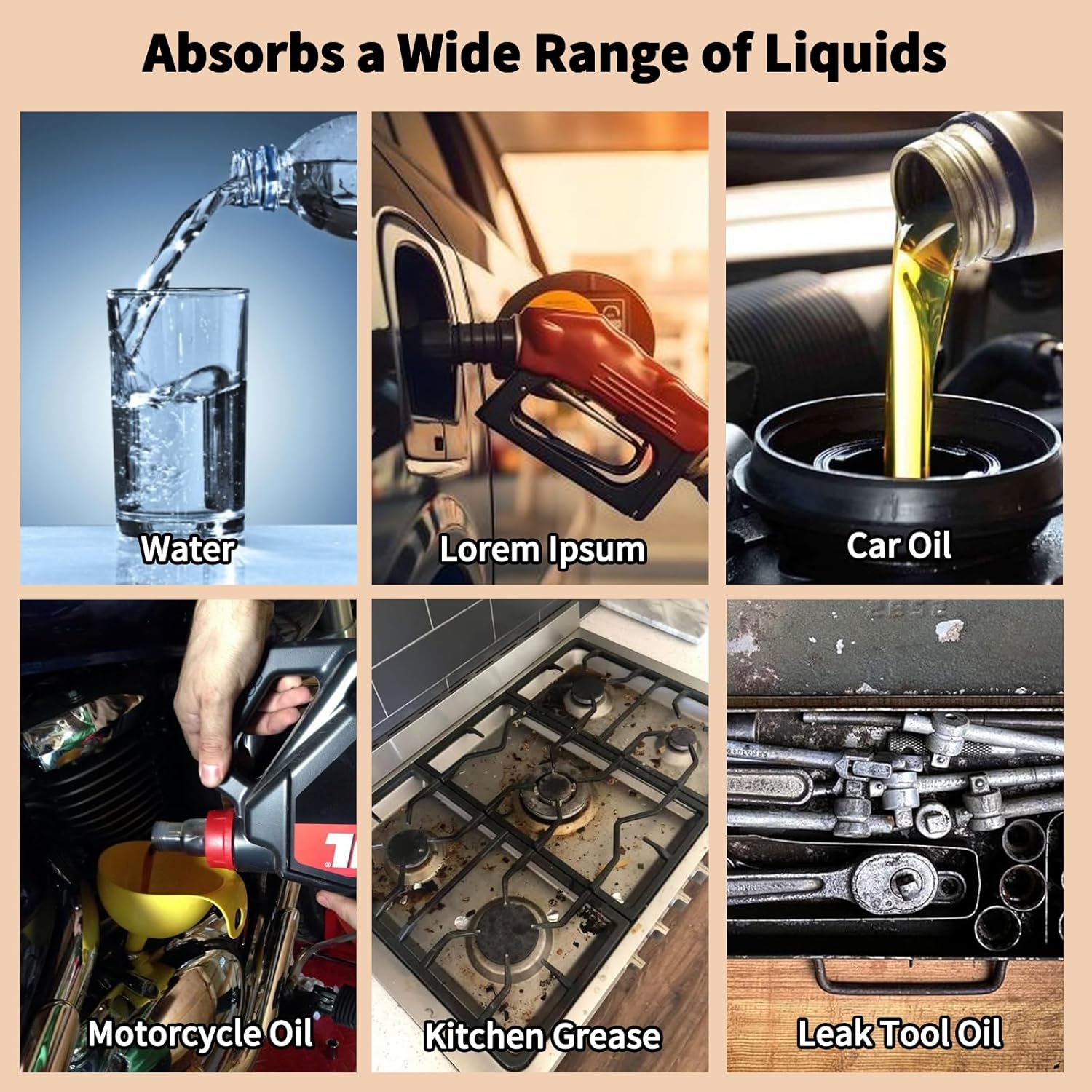 - INSTANT SPILL CONTROL - Quickly absorbs oil, grease, coolant, and water with high-efficiency polypropylene mesh—3X faster than paper towels. These oil absorbent pads work as both oil spill mats and water absorbent mats