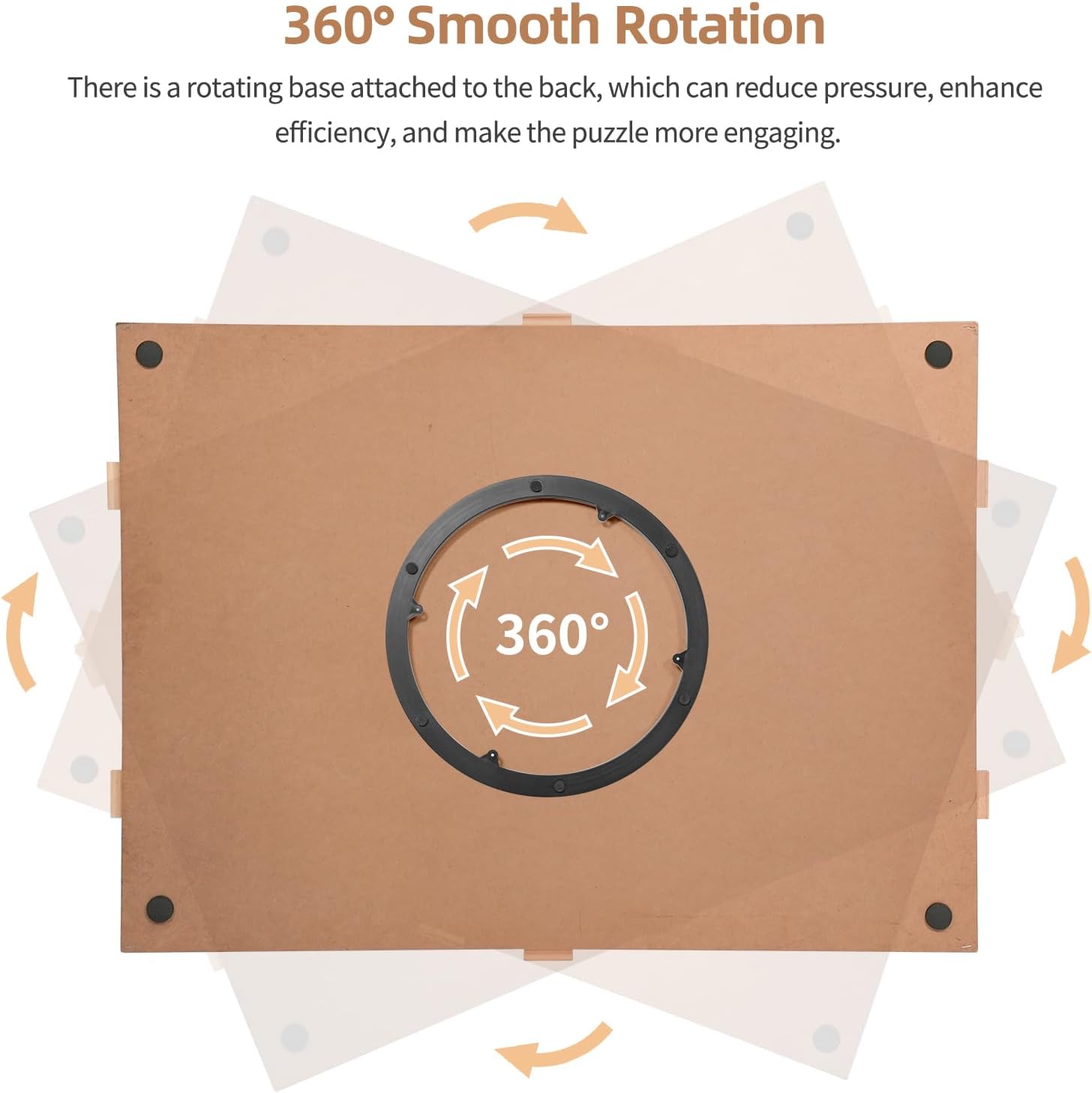 - 360Β° Smooth Rotation:The lazy Susan Design provides effortless 360-degree rotation, allowing you to easily access every section of your puzzle without stretching or repositioning. Whether you're assembling a 1000-piece puzzle or working on a more complex design, this feature enhances efficiency, reduces strain, and makes puzzling more enjoyable.