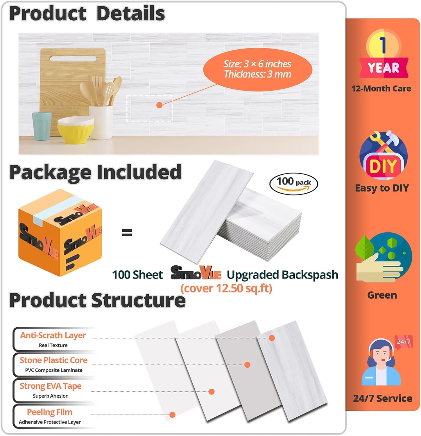 100 Pieces Peel and Stick Backsplash for Kitchen, 3" x 6" PVC Subway Tile 2025 Upgraded Dolomite Star Gray Backsplash Stick on Tile Elevate Kitchen Fireplace RV