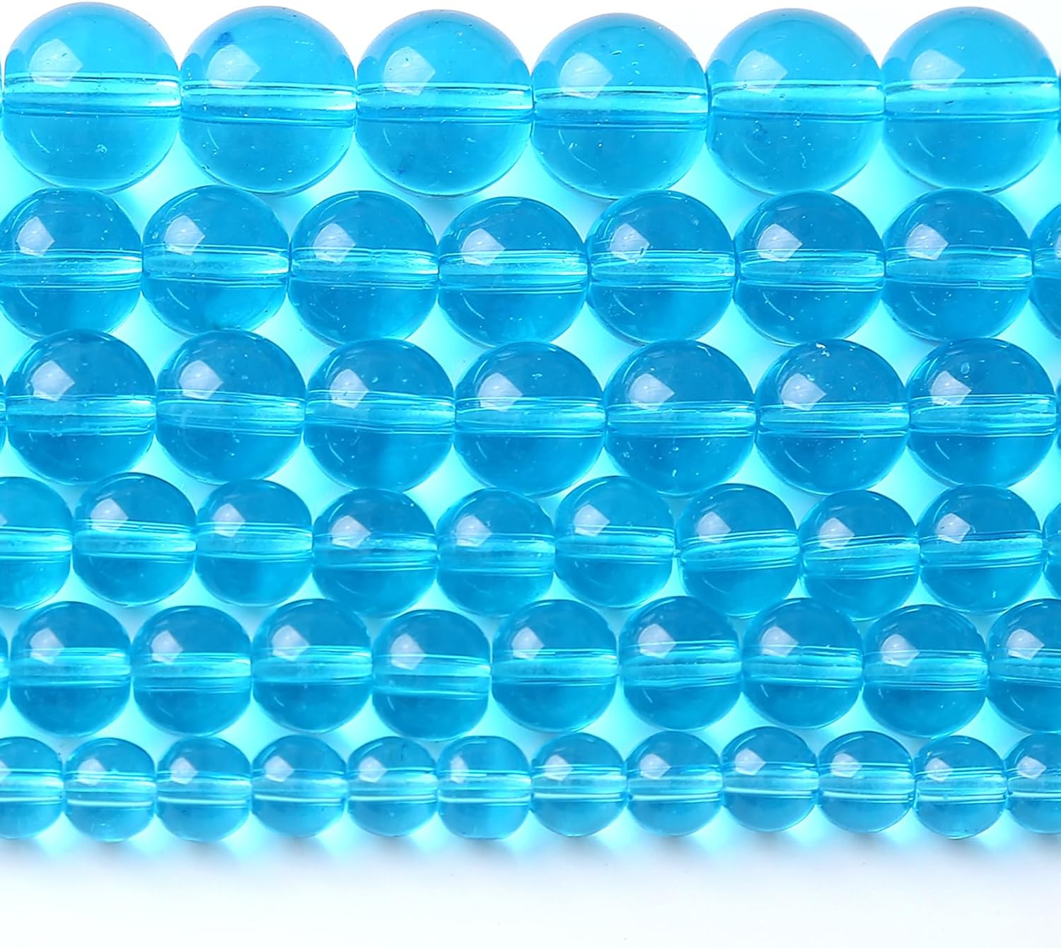 10MM Lake Blue Glass Beads Natural Gemstone Round Loose Stone Beads for Jewelry and Bracelets Making 72pcs 2 Strands 32"