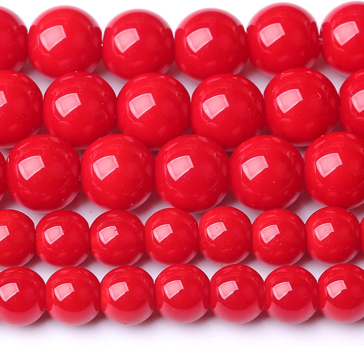 - Material: coral red glass stone beads, round beads, highly polished, smooth, glossy finish, excellent polish